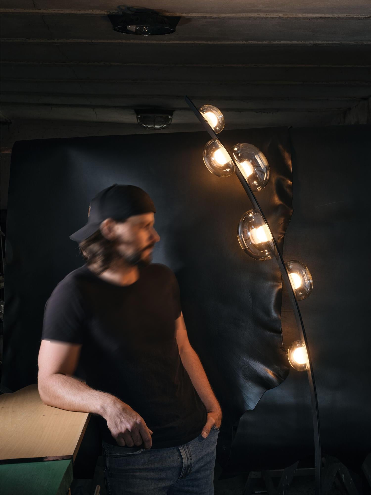 Expertly crafted with precise details, the Bubbles Glass Floor Lamp brings the familiar shape of dew drops to light. Its internal light source provides a stunning aesthetic experience, while the iridescent hints add a touch of elegance. The hand-sewn bands secure the glass objects for a timeless look.