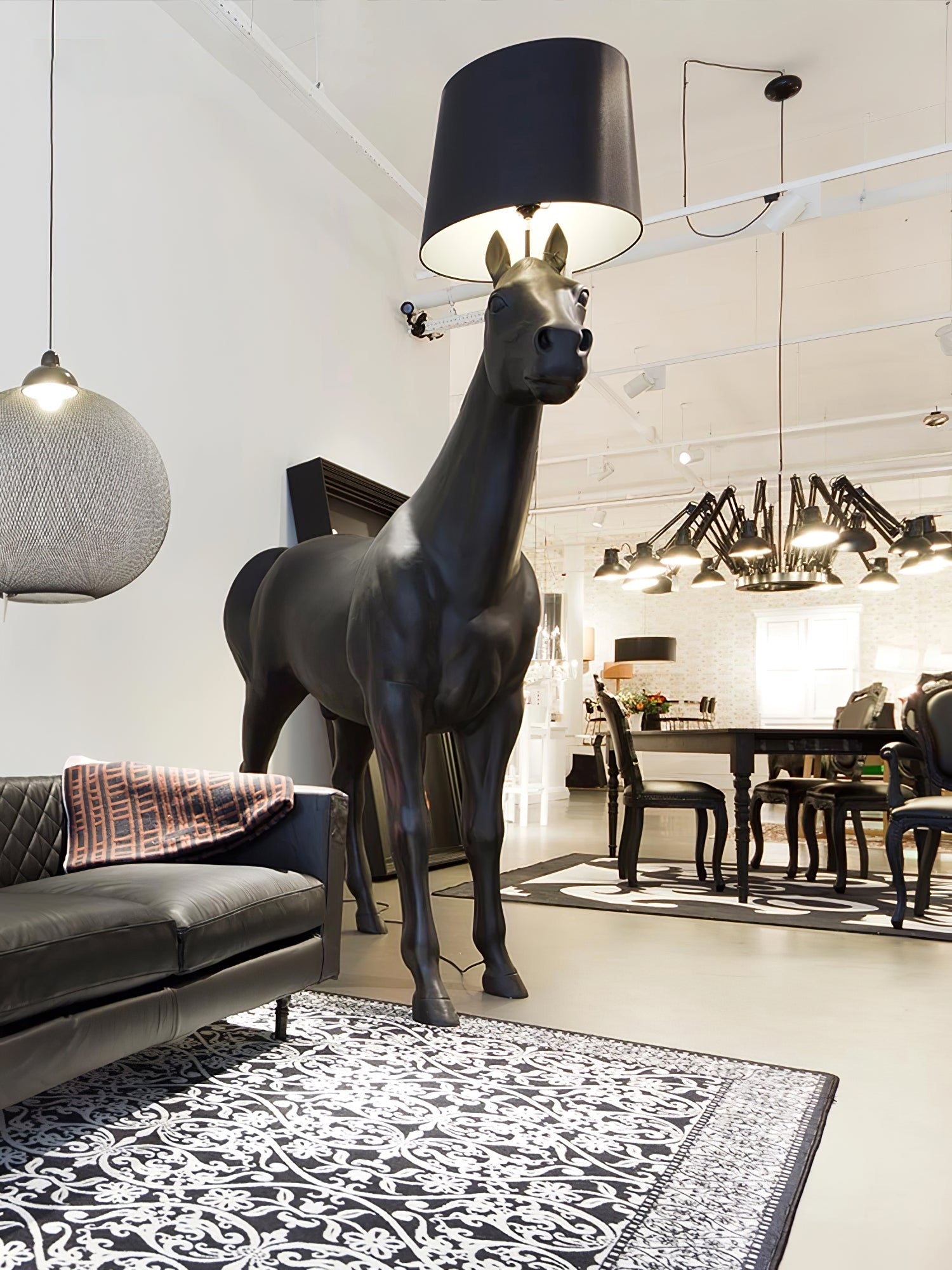 Make a bold statement with yovinolight's Equine Majesty Floor Lamp, a stunning fusion of art and function. This larger-than-life floor lamp is crafted in the shape of a majestic horse, adding an avant-garde touch to your interior. The sleek black finish and modern design transform it into a captivating centerpiece that demands attention. Perfect for art-inspired living spaces, high-end interiors, or contemporary homes, the Equine Majesty Floor Lamp is sure to elevate any room with its unique charm and creative aesthetic. More than just a lamp, it’s a conversation piece that brings a touch of luxury and playful sophistication to your decor.