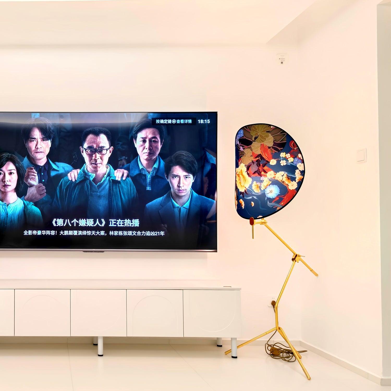 The lampshade, a masterpiece of textile art, features a sophisticated motif of flowers that seem to float across a deep, mysterious background, suggesting the quietude and splendor of an evening landscape. As light emanates from within, it transforms the lamp into a beacon of warmth, casting a glow that is as soft as it is enchanting.