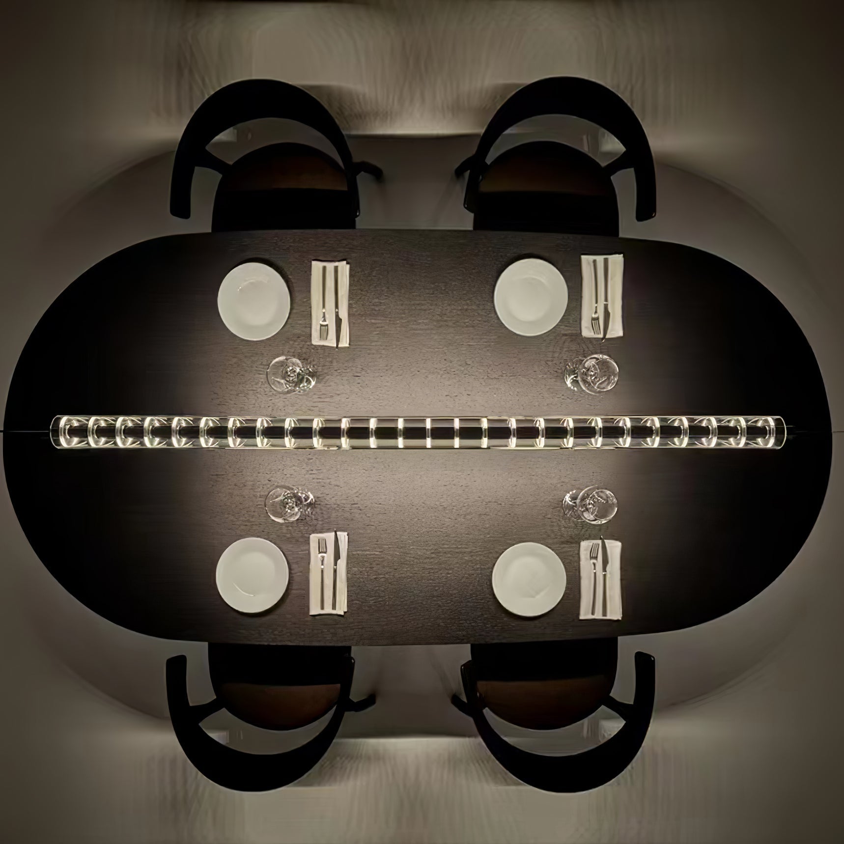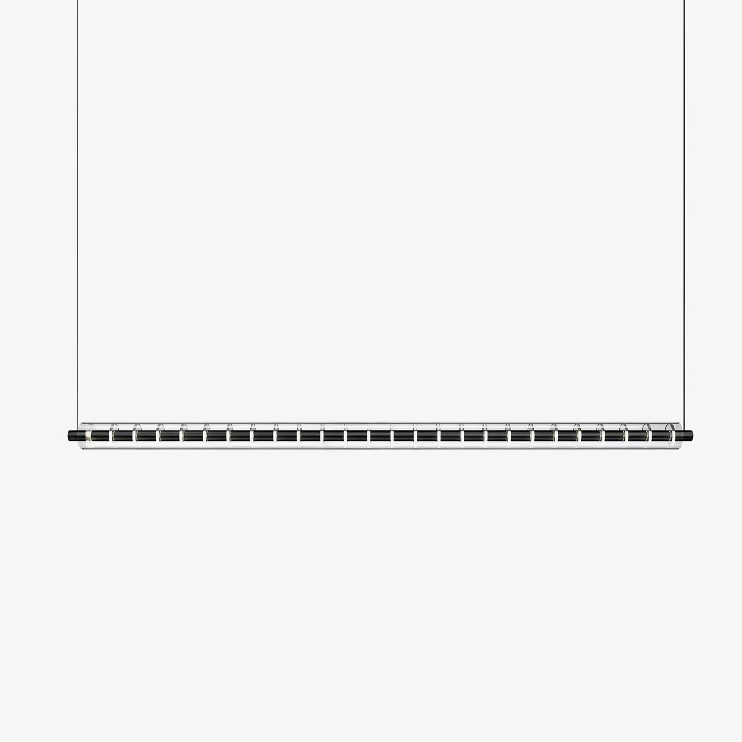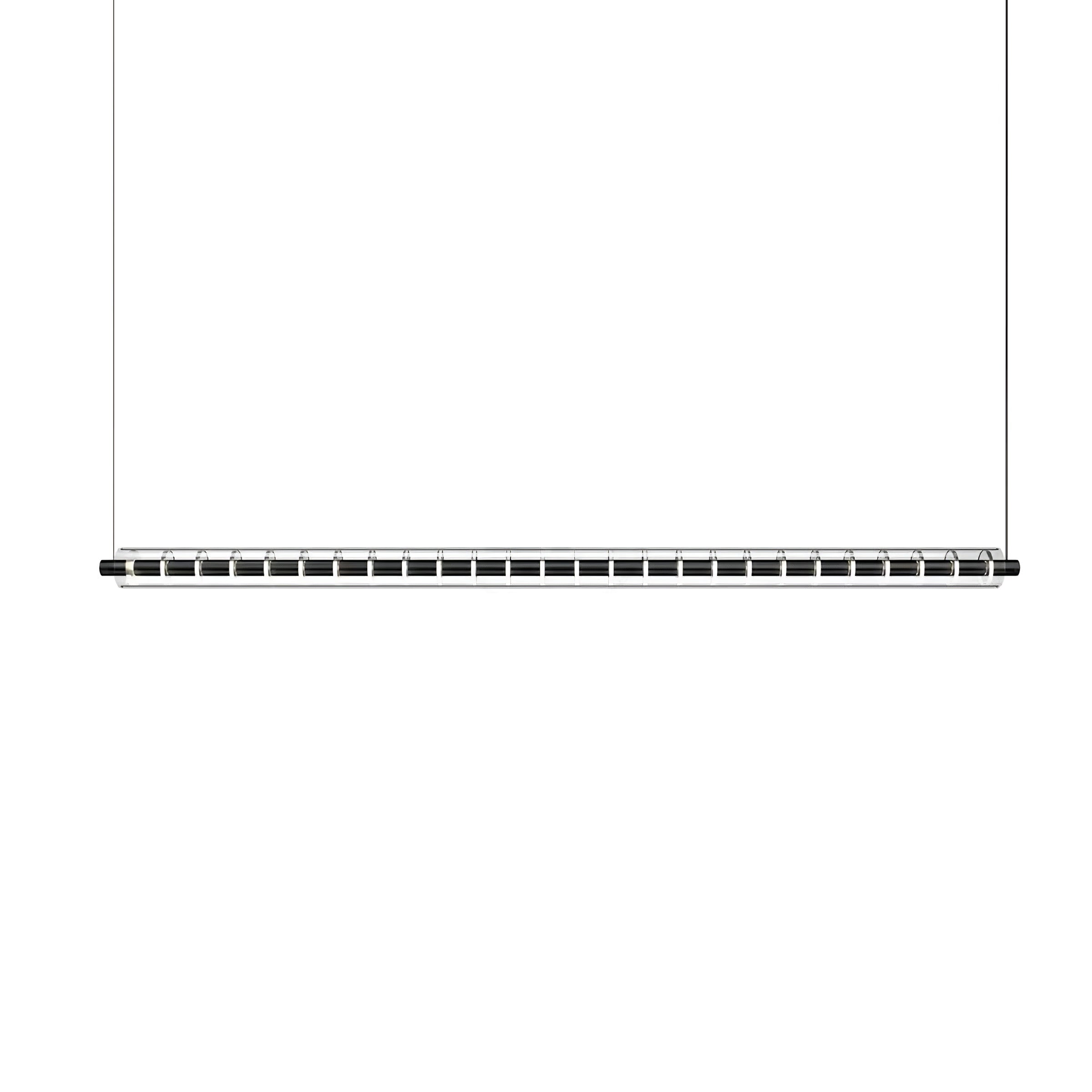 Daring and fanciful, Loop appeals to industrial lyricism with a design inspired by electrical insulators.‎ The protagonist of the decoration, its body is a sequence of light disks with an aluminium interior.‎ It's adorned by a suspended glass cylinder that acts as a fastflowing, controlled source of projected light.‎
