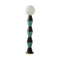 The Palm floor lamp plays with geometric shapes and tones to create an original design. It features alternating truncated cone-shaped elements in two different and contrasting colours, an iron base and a satin-finished glass spherical light diffuser.