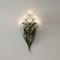 Designed with sculpted iron leaves and delicate glass flowers, this wall sconce will illuminate any room, casting a soft, diffused light that mimics the peaceful glow of a sunlit garden. The fusion of rustic green and gold tones complements the floral pattern to create a timeless piece, perfect for adding a touch of elegance and natural charm to your living space.