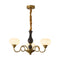 The Elaris Chandelier by yovinolight is a stunning fusion of artistry and craftsmanship, combining iron, glass, and wood for a sophisticated look. Its elegantly curved iron arms extend gracefully, supporting ribbed frosted glass shades that diffuse a warm, inviting glow. The wooden accents add a touch of natural charm, while the antique brass finish gives it a timeless appeal. Perfect for dining rooms, living spaces, or entryways, the Elaris Chandelier brings a harmonious blend of vintage elegance and modern refinement to any interior.