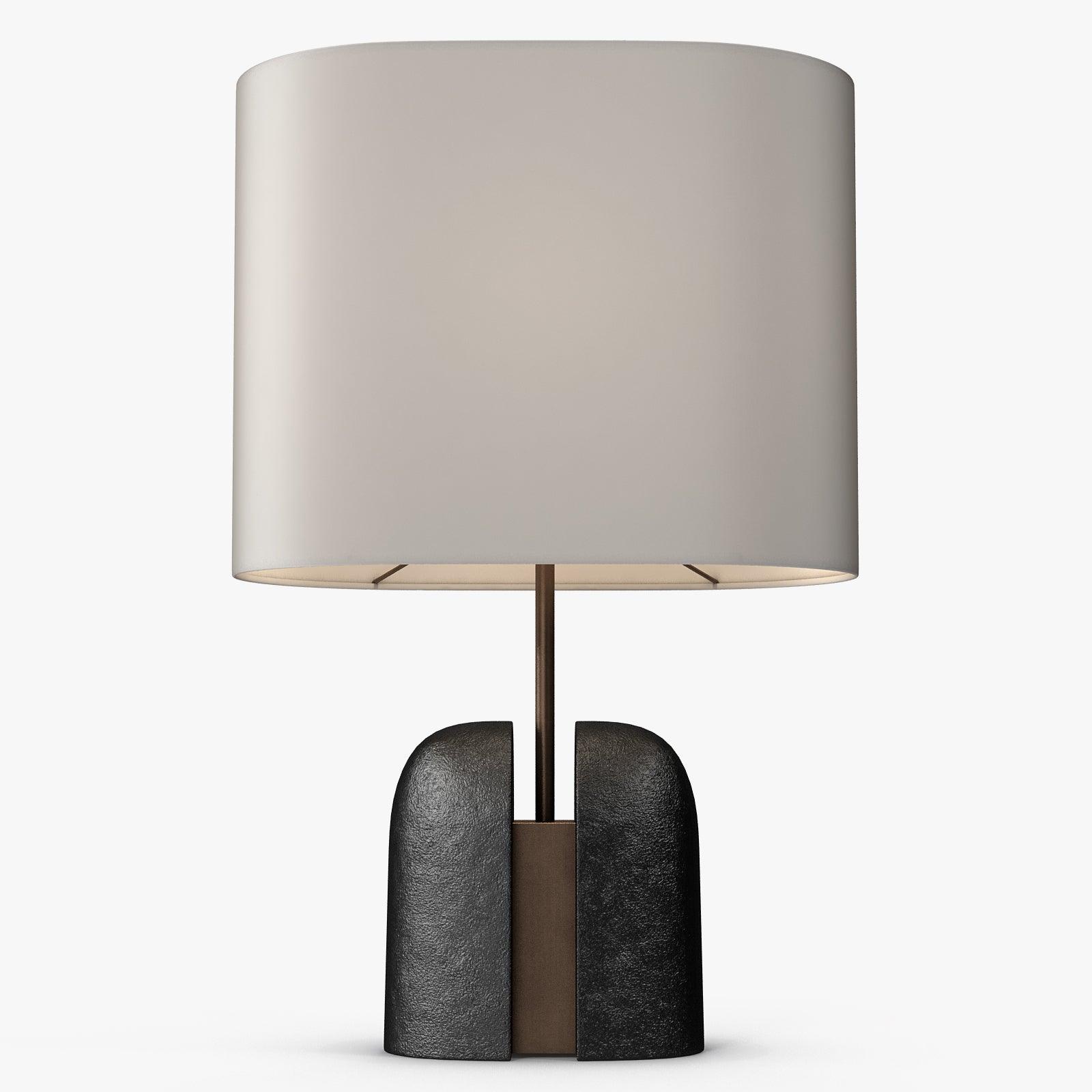 The Madoc Table Lamp features a stylish combination of textured resin, iron, and fabric shade. When illuminated, the layers of the shade give off a beautiful unity of light and darkness, creating a stunning effect. An ideal choice for a desk, coffee table, or bedside table.