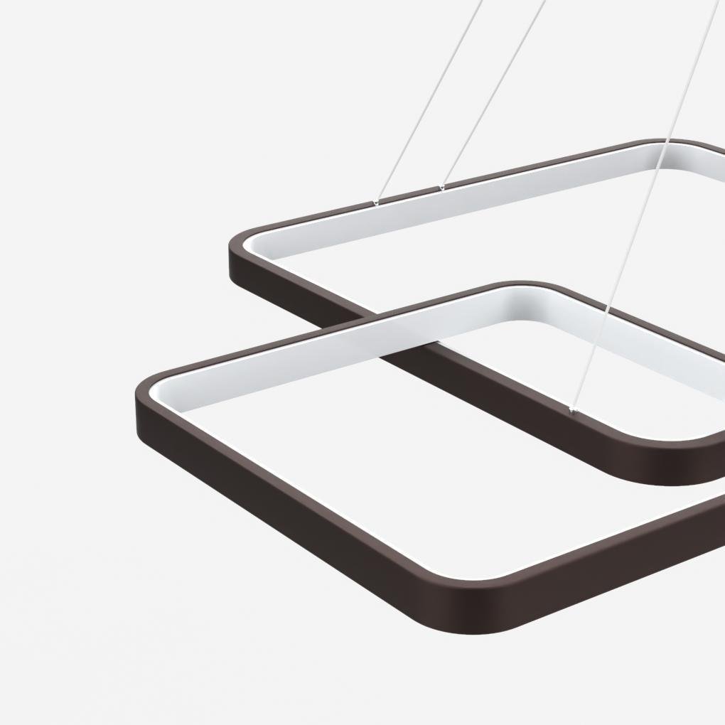 • Suspended from the ceiling, the three aluminum squares descend in small, medium, and large squares creating a design that is both precise and arbitrary. This is a look that's rarely seen in living room lighting, creating an audacious and unforgettable conversation piece.