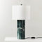 This elegant lamp features a striking green marble column base, topped with a crisp white drum shade—perfectly balancing bold texture and serene light. Whether in a living room, office, or bedside, its natural veining and sleek silhouette bring refined charm and a calm ambiance.