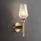 Designed with luxury and sophistication in mind, the Devora Brass Wall Lamp is an exquisite art piece that adds a touch of glamor to any room. Its concentric rings of faceted glass refract light in a captivating display, while its solid brass frame is inspired by the 20th-century Austrian Wall Lamp. Refined ribbed glass leaves have a remarkable relief on the outside and shimmer from within, creating a stunning glow.