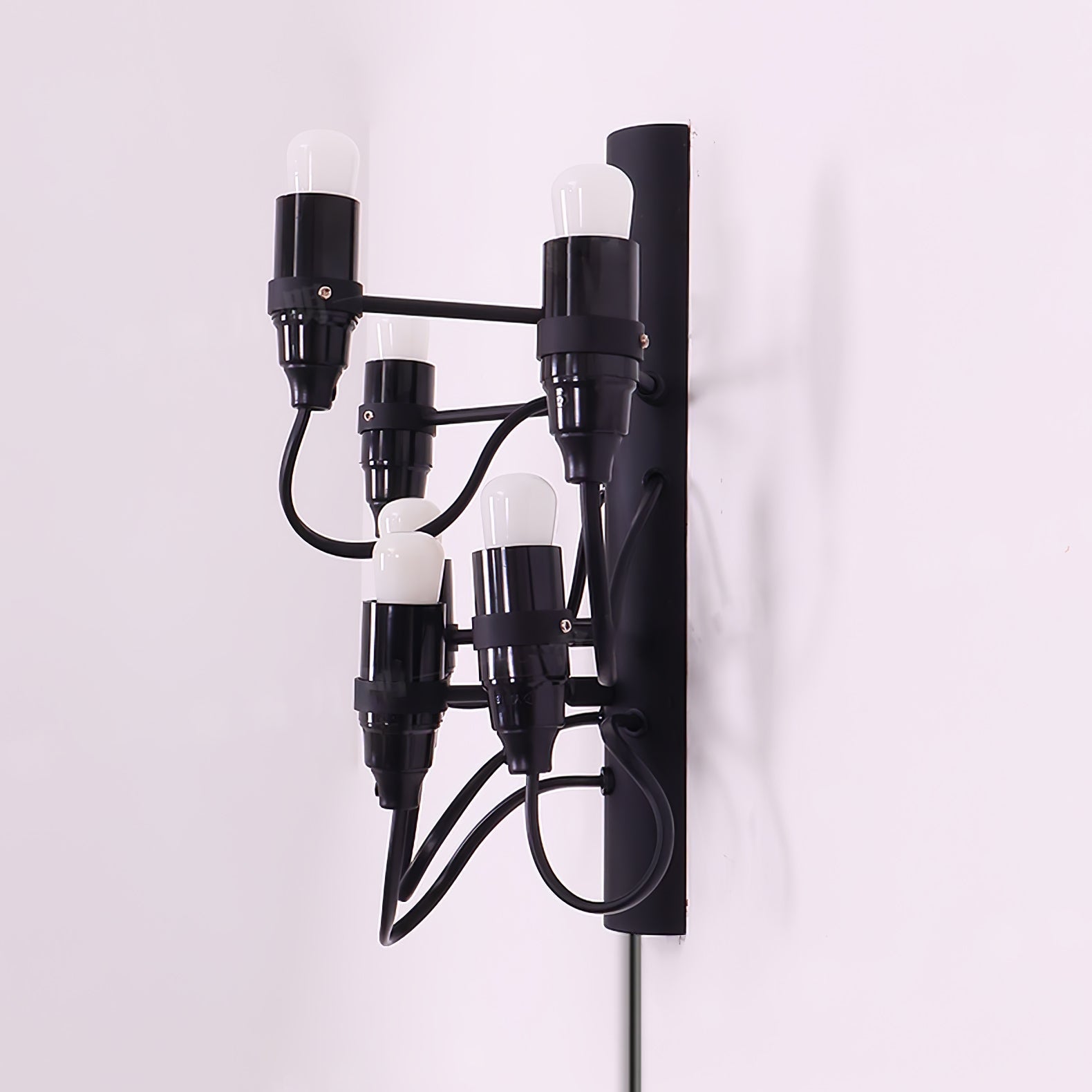 Illuminate any room with the sleek and modern Fruit Plug-in Wall Lamp. With a mirror-polished steel structure and expertly crafted details, this lamp adds an elegant and exquisite touch to any space. The horizontal arm mounting of each bulb and graceful wire design further elevate the overall aesthetic.