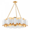 This 1960s inspired design gives a nod to the past while still remaining fabulously current. Whether it's the single shade sconce, three-shade pendant or 12-shade chandelier and linear, every shade has a hand-applied gold leaf finish on the inside and two bulbs to casts a golden glow from both above and below. Available in soft black or soft white.