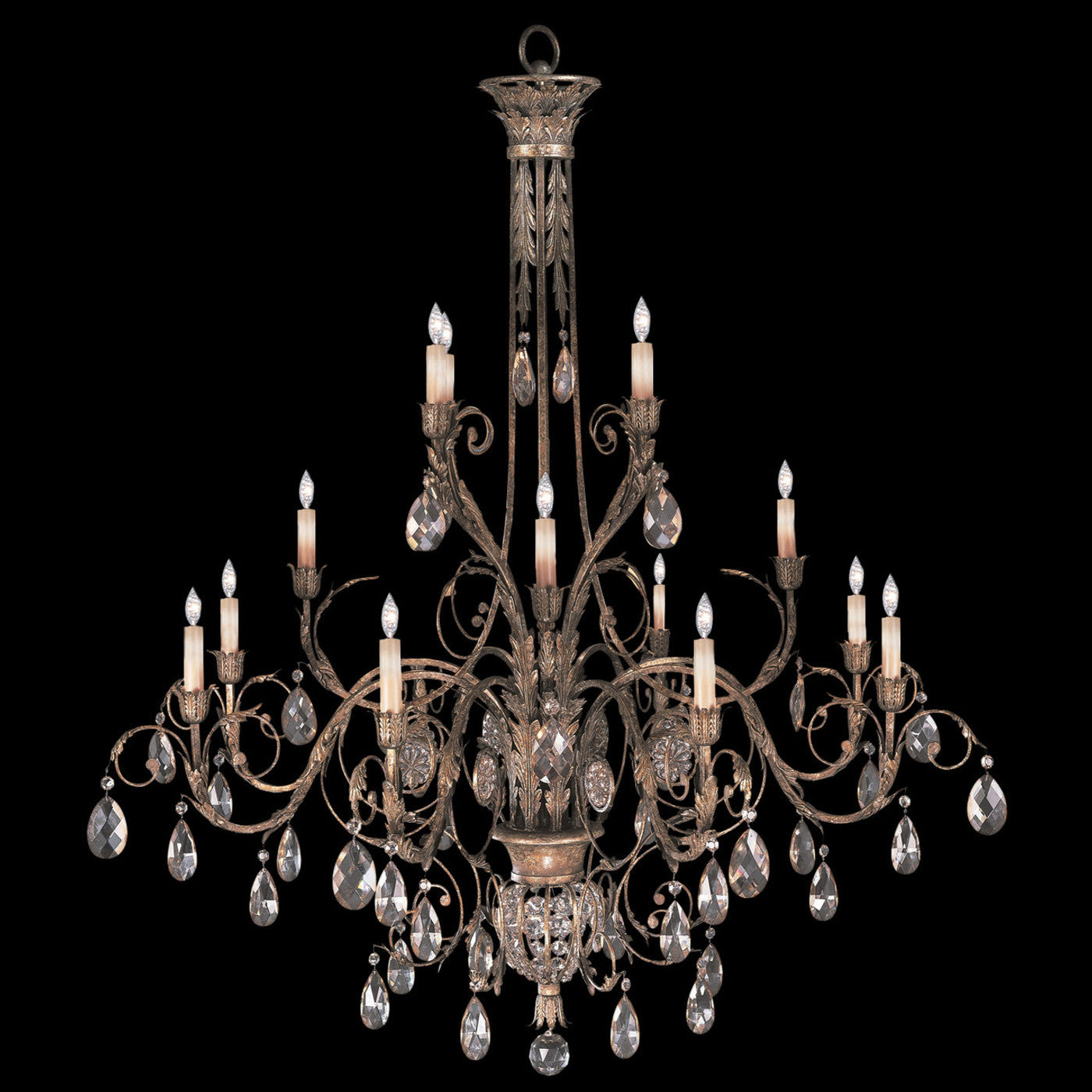Three-tier chandelier in cool moonlit patina with moon dusted crystals.