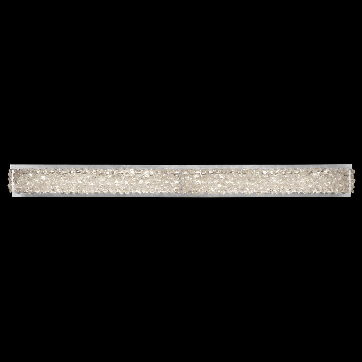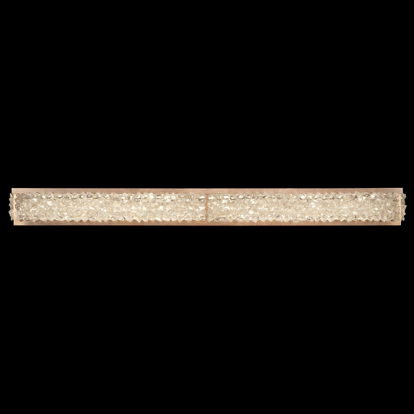 Luxury LED bath fixture featuring hundreds of rough cut crystal glass gems that refract light in a manner reminiscent to the cirrus clouds ice crystals that form the lunar halo in the frozen night sky. Available in Gold, Black and Silver finish.