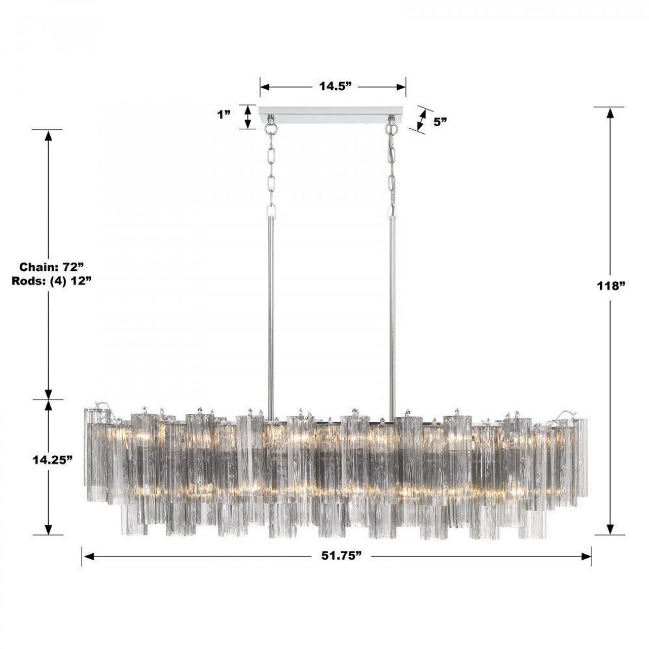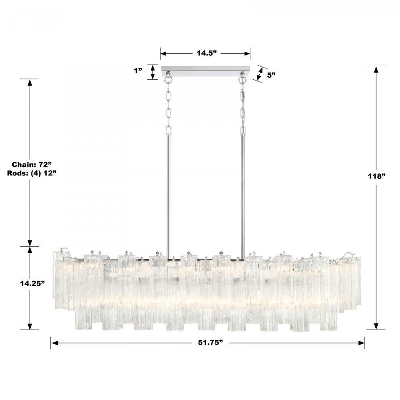 • Dimensions: 51.75"W x 14.25"H x 14"D