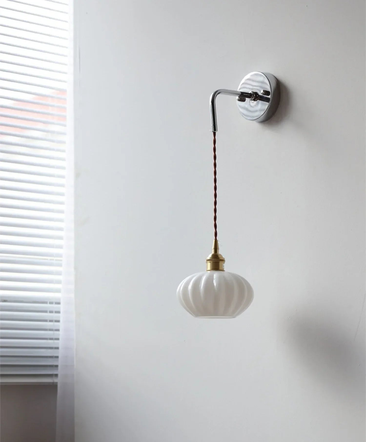 Ceramic Canopy LED Wall Lamp, Adjustable Wire, Pull Chain Switch