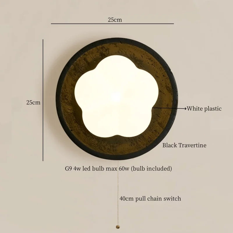 Afralia™ Modern Cotton LED Wall Lamp Pull Chain Switch Yellow Travertine Nordic Bedroom Living Room