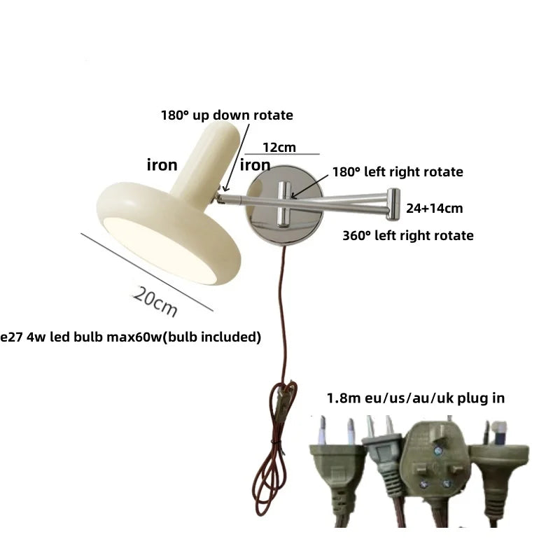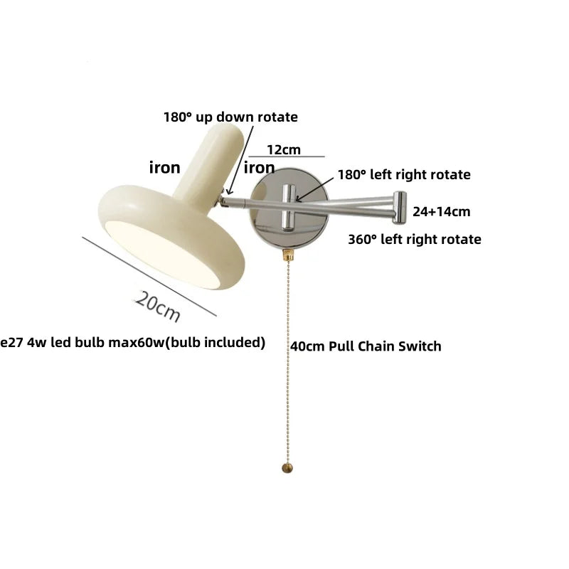 Rotatable Nordic LED Wall Sconce Pull Chain Switch Stair Light - Indoor Restaurant Bedroom Porch