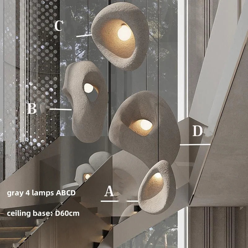 Wabi-sabi Resin Pendant Chandelier | Nordic Villa Stair Decor Droplight