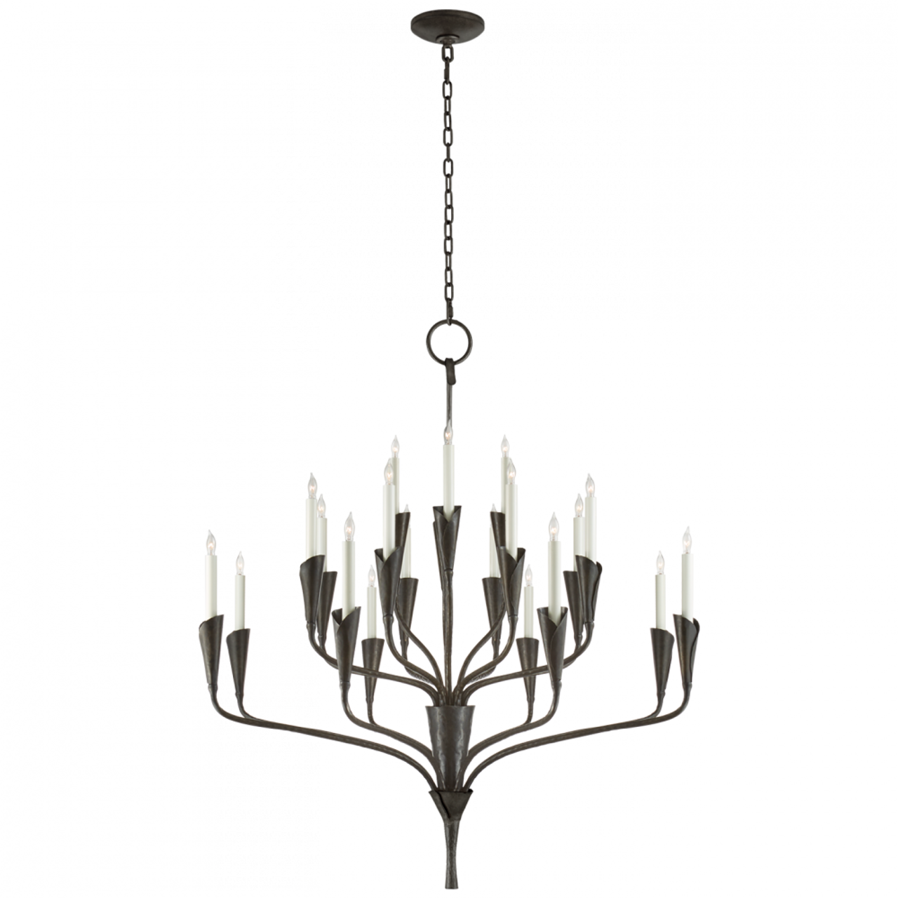 Effortlessly combining mid-century and medieval elements, Chapman & Myers' Aiden showcases hammered steel, manipulated with traditional hand-applied techniques to enhance its unexpected textures. The sculptural silhouettes boast details inspired by calla lilies that lend an organic touch to the metalwork. The unique blend of influences, explored through sconces, chandeliers, and floor lamps, will bring an iconic accent to be modern and eclectic spaces.