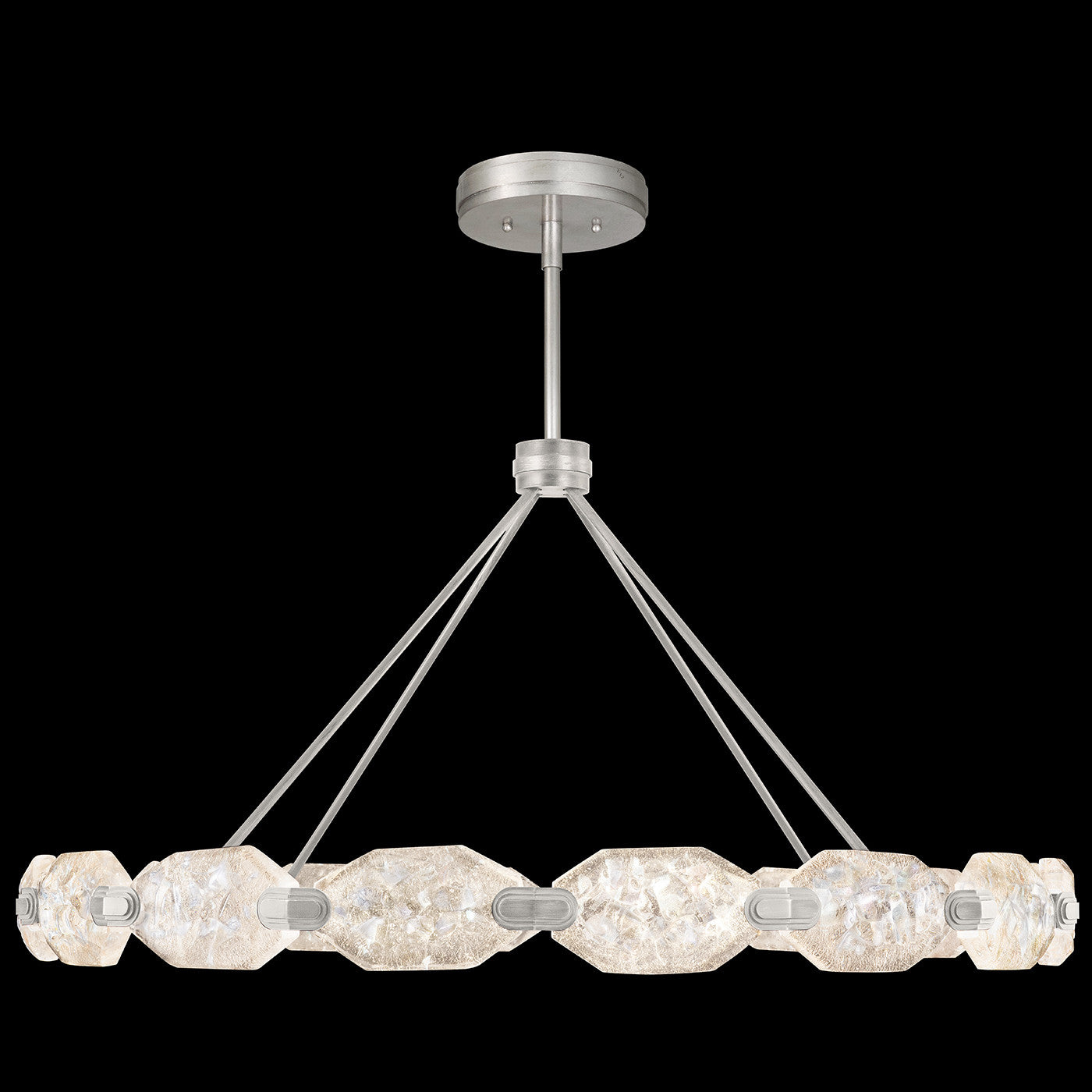 State of the art LED pendant, created by acclaimed interior designer Allison Paladino incorporates our exclusive studio process of dichroic rough-cut sculpted glass. Each gem is lit by hidden LED highlighting a subtle dual-colored reflective brilliance. Available in Silver, Gold and Bronze finish.