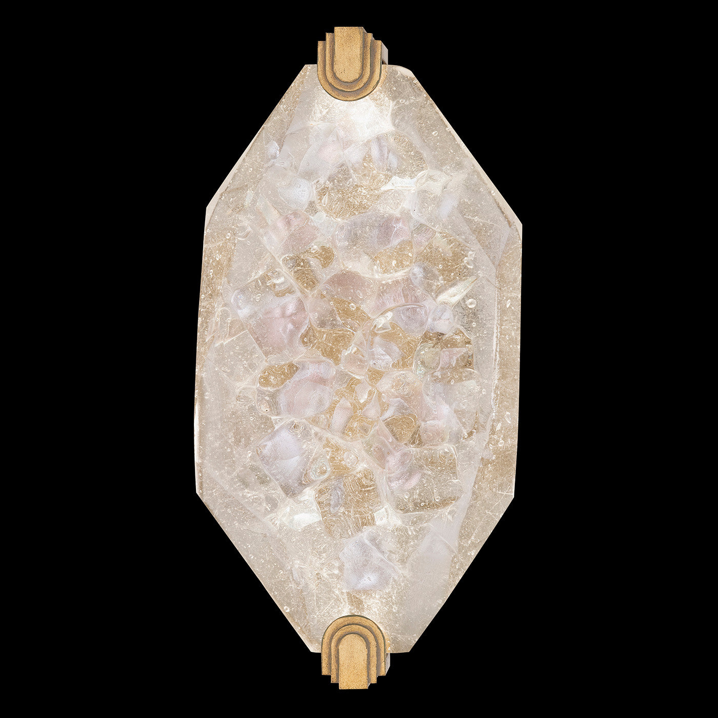 State of the art LED sconce, created by acclaimed interior designer Allison Paladino incorporates our exclusive studio process of dichroic rough-cut sculpted glass. Each extra large gem is lit by hidden LED highlighting a subtle dual-colored reflective brilliance. Available in Silver, Gold and Bronze finish.