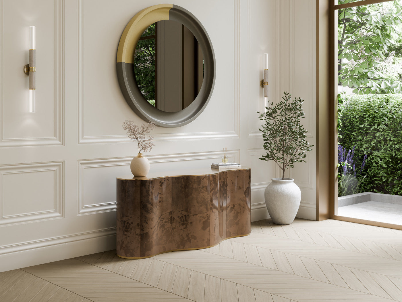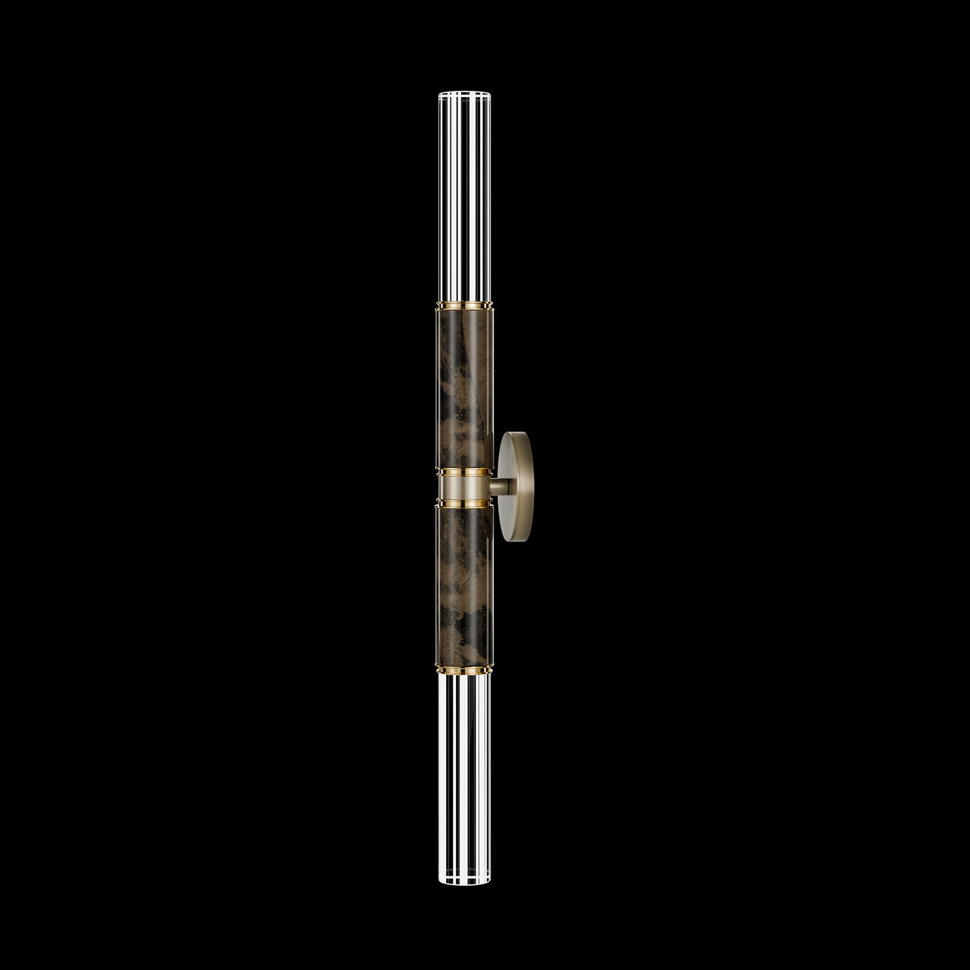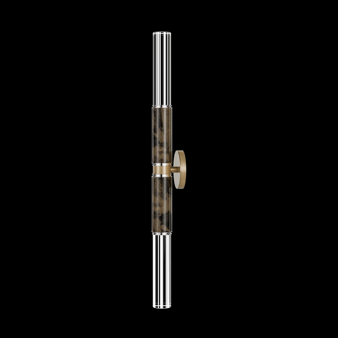 LED sconce features straight tubular lines and the inclusion of metals carefully handcrafted to transition from parchment to magnificent glass, culminating in a stunning beam of light. Available in a wide range of exquisite finishes, including our five standard finishes and our newest Soft Ombre Bronze & Soft Ombre Silver, with the choice of two inline parchment colors, Charcoal and Smoke, and three special order options: Mink, Burnt Orange & Navy/Gold. Also available with no parchment.