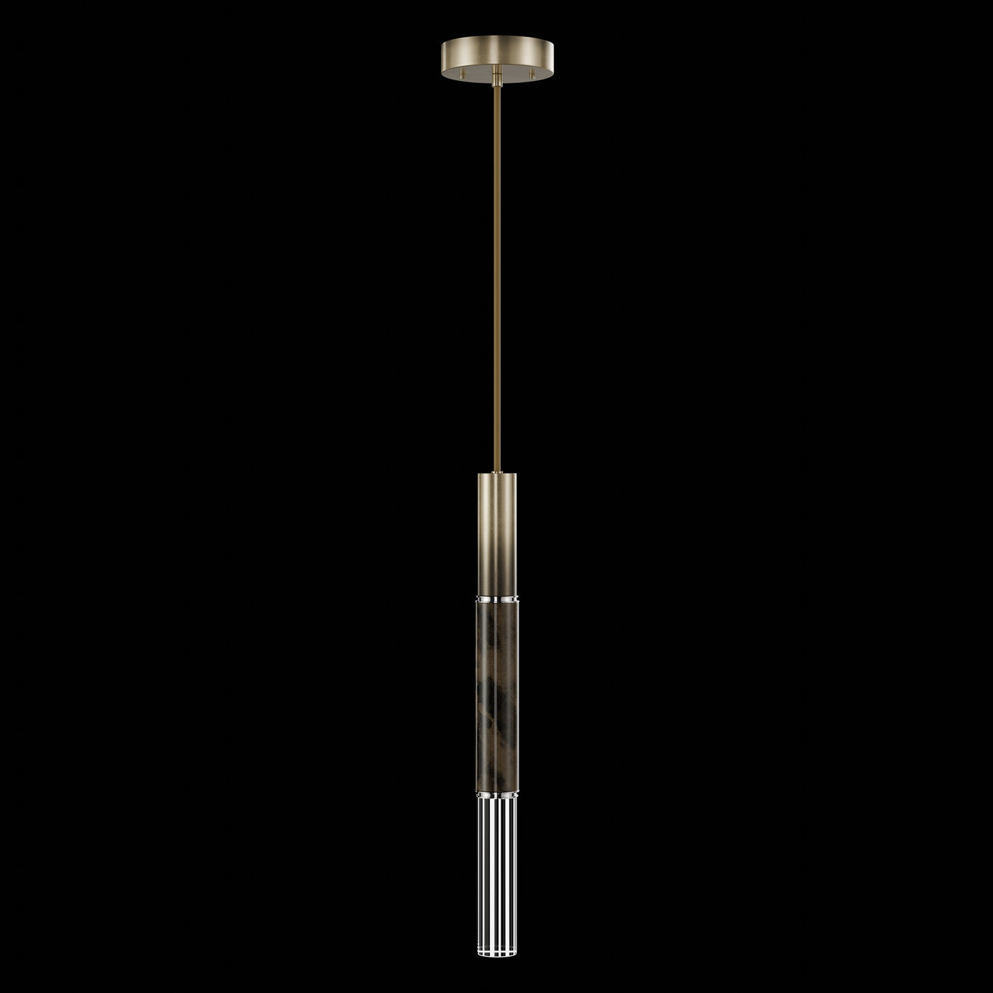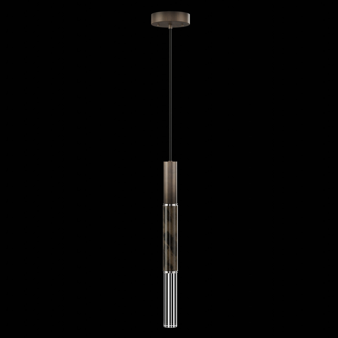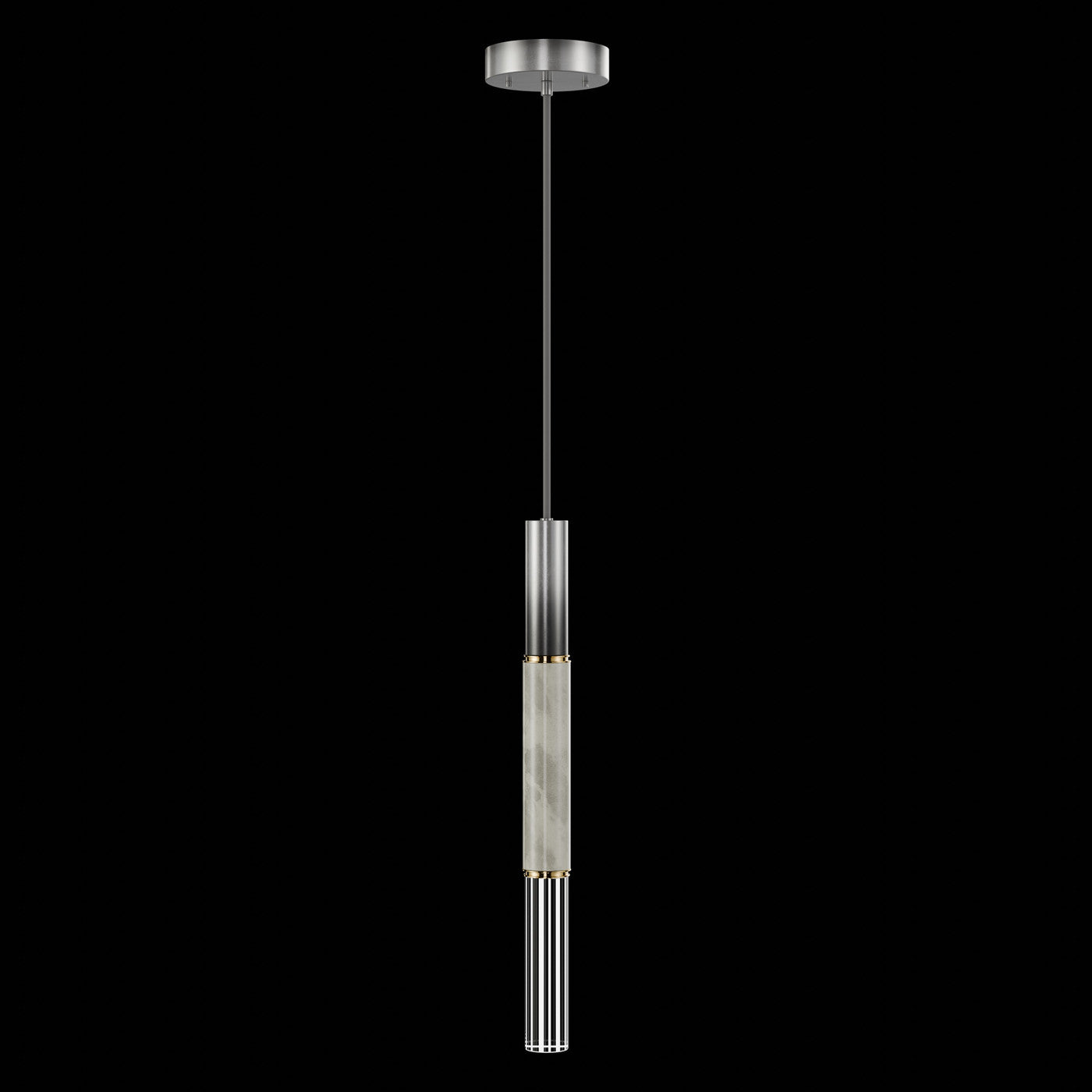 Suspended by an adjustable cord, this LED fixture features straight tubular lines and the inclusion of metals carefully handcrafted to transition from parchment to magnificent glass, culminating in a stunning beam of light. Available in a wide range of exquisite finishes, including our five standard finishes and our newest Soft Ombre Bronze & Soft Ombre Silver, with the choice of two inline parchment colors, Charcoal and Smoke, and three special order options: Mink, Burnt Orange & Navy/Gold. Also available with no parchment.