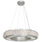 Chandelier featuring hundreds of rough cut crystal glass gems that refract light in a manner reminiscent to the cirrus clouds ice crystals that form the lunar halo in the frozen night sky. Available in Gold, Black and Silver finish.