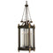 Lantern of aluminum in weathered woodland brown with gold highlights and solid brass accents. Features hand blown seedy glass and decorative canopy.