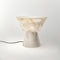 The Beta Table Lamp offers an elegant statement piece for any room. Crafted with two conical shapes separated by a delicate gilt-brass trim, its contemporary and timeless design emits a soft, warm glow to highlight the intricate beauty of alabaster.