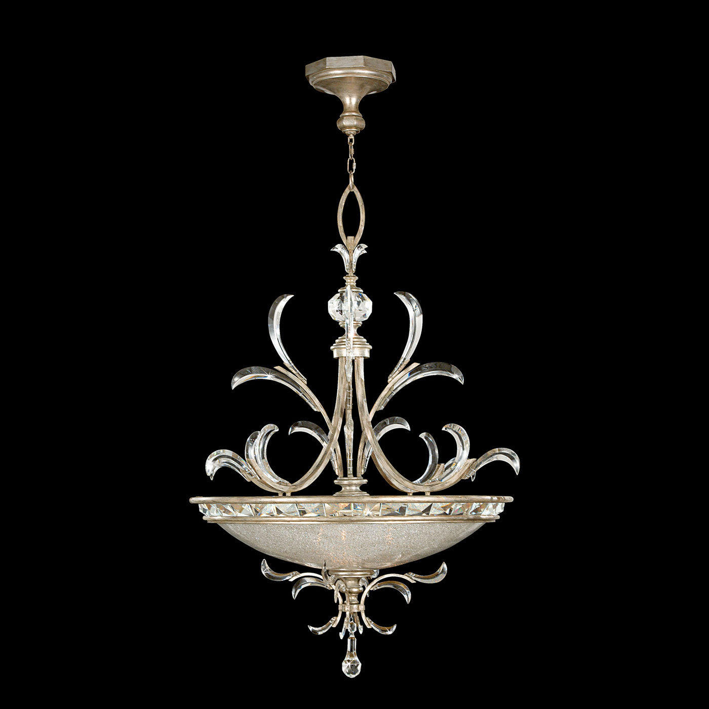 Pendant features beveled crystal accents. Available in Silver, Gold, Silver Leaf and Gold Leaf finish.