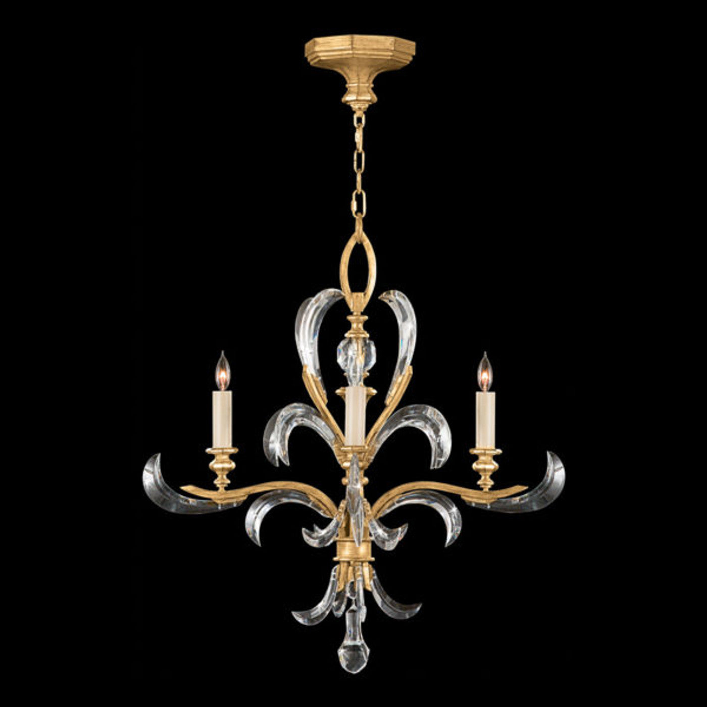 Chandelier featuring beveled crystal accents. Available in Silver, Gold, Silver Leaf and Gold Leaf finish.