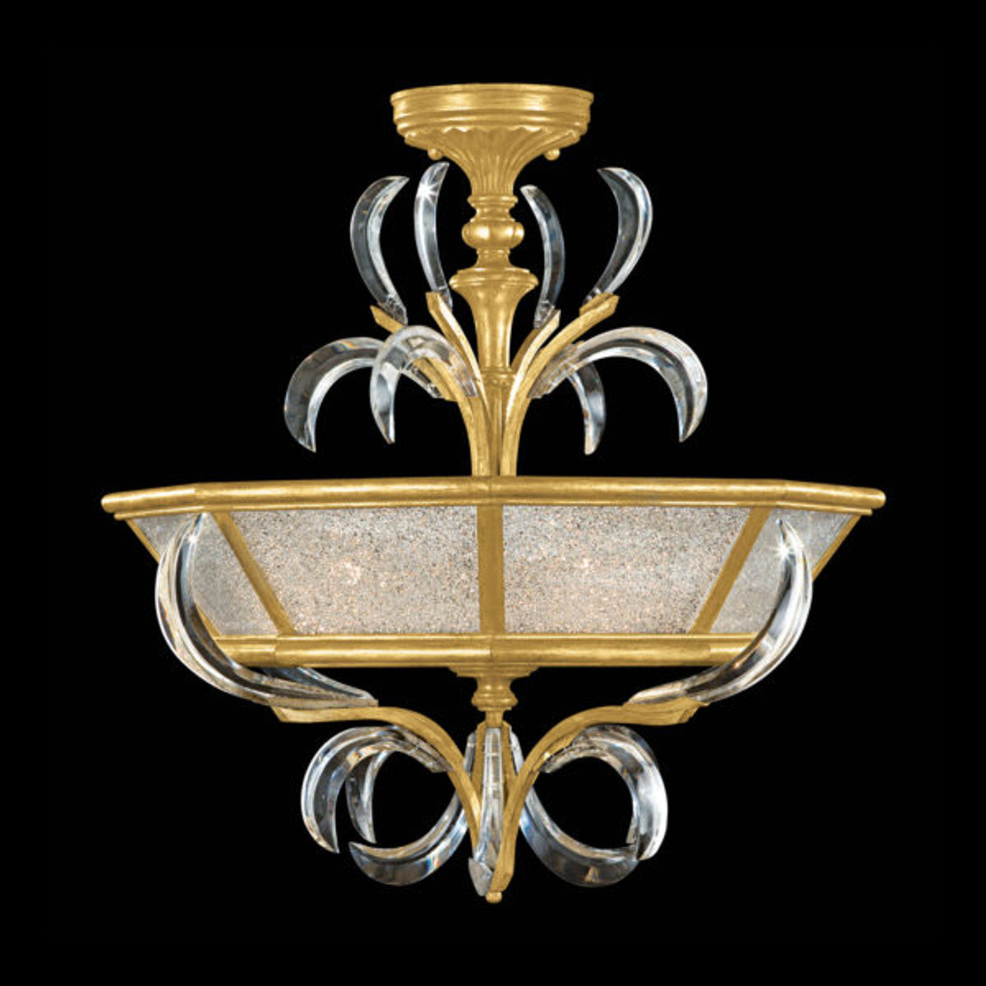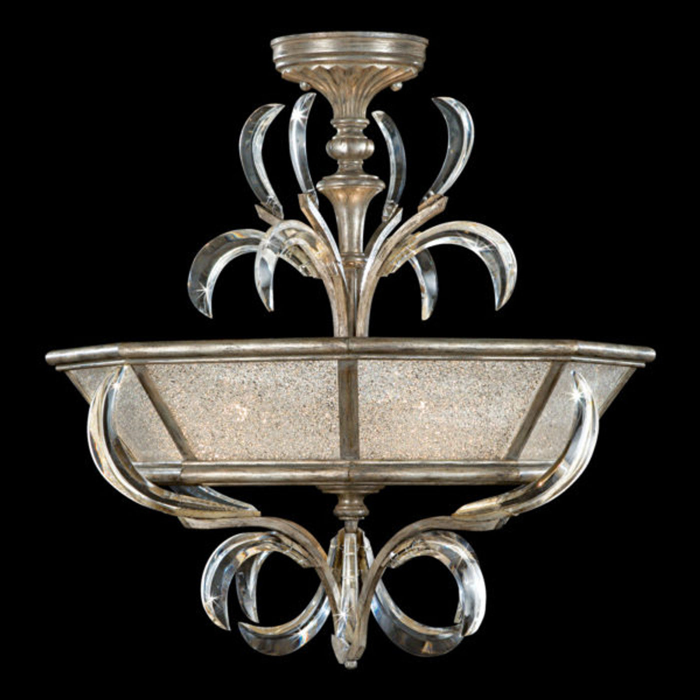 Semi-flush mount features beveled crystal accents. Available in Silver, Gold, Silver Leaf and Gold Leaf finish.