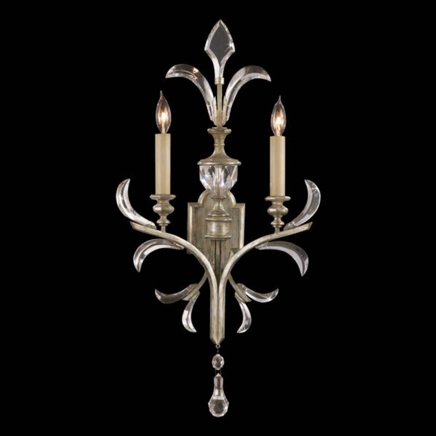 Sconce features beveled crystal accents. Available in Silver, Gold, Silver Leaf and Gold Leaf finish.