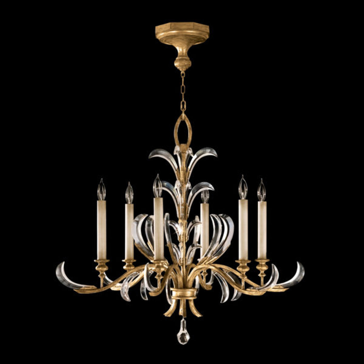 Chandelier featuring beveled crystal accents. Available in Silver, Gold, Silver Leaf and Gold Leaf finish.