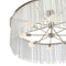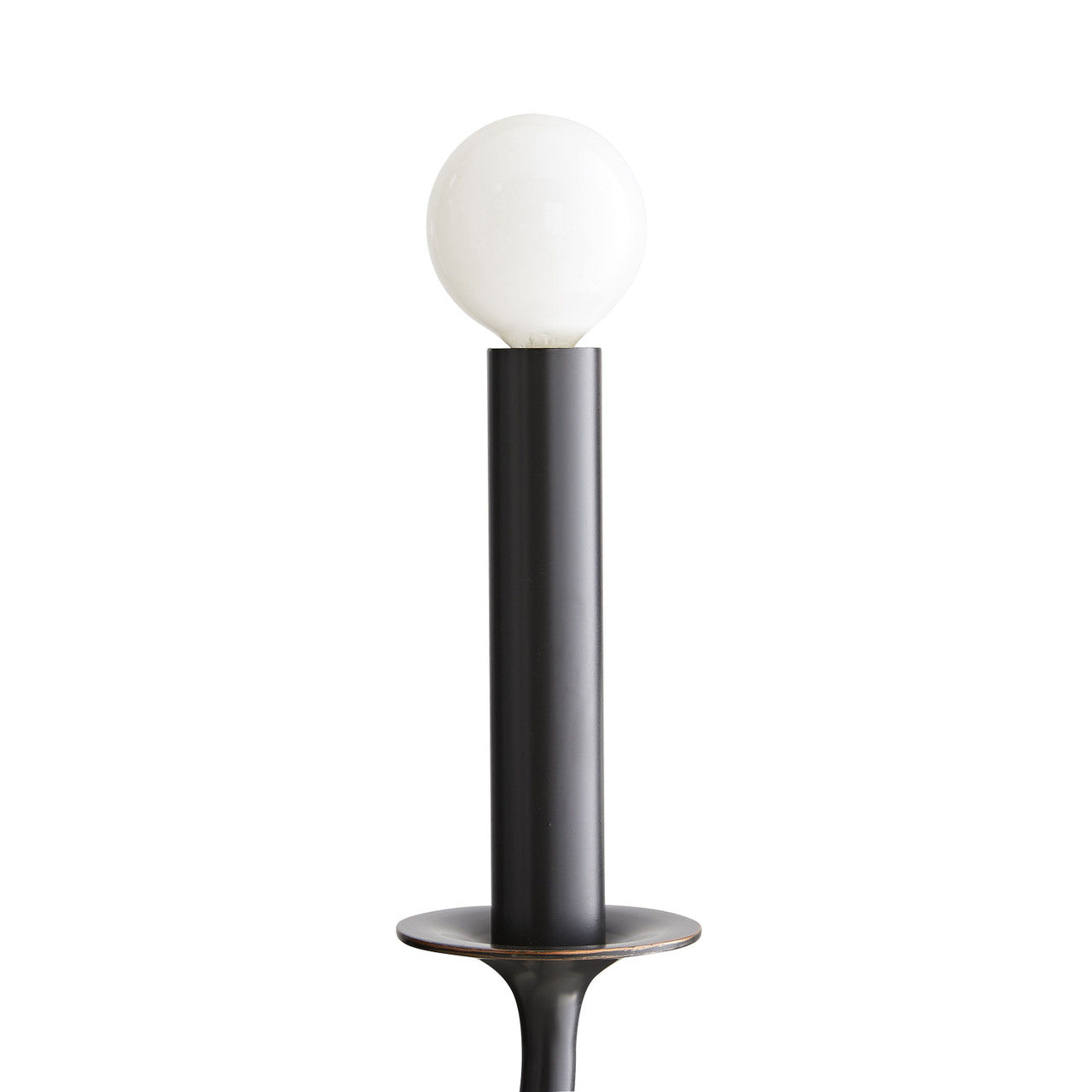 This chandelier features steel arms that curve upwards reaching from a center point at two different heights to create a double tier effect. The entire structure is finished in a bronze tone and is constructed with a seamless design. it is a modern take on a centuries-old classic. It holds eighteen exposed bulbs for maximum light. Damp-rated, although limited covered outdoor conditions may affect finish.