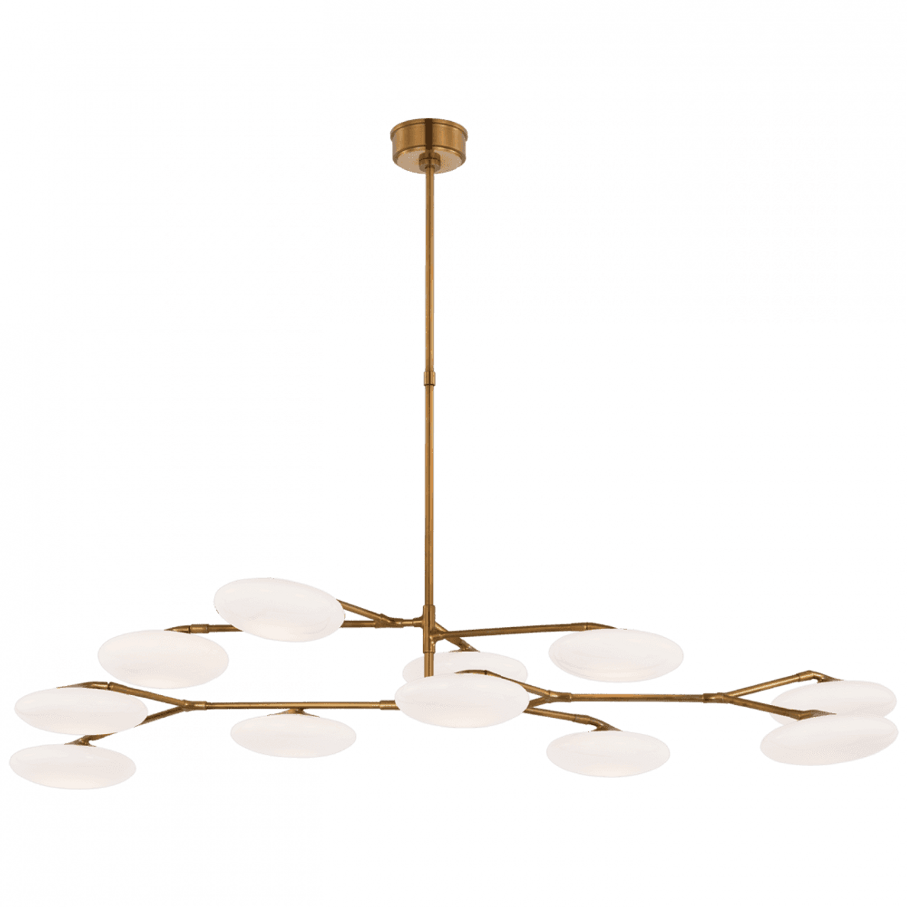The Brindille by Champalimaud strikes a balance between organic beauty and technical innovation. As if a branch laden with petals, the slender gunmetal, polished nickel, or soft brass arms of the suspended frame support petal-like white glass shades. Thanks to a spoon-shaped brass fitting technique, these can rotate 360 degrees, offering varied and adjustable lighting when and where needed—a poetic focal point above any dining room table.Visual Comfort Signature, formerly known as Visual Comfort, offers a wide range of stunning lighting fixtures that are both functional and stylish.