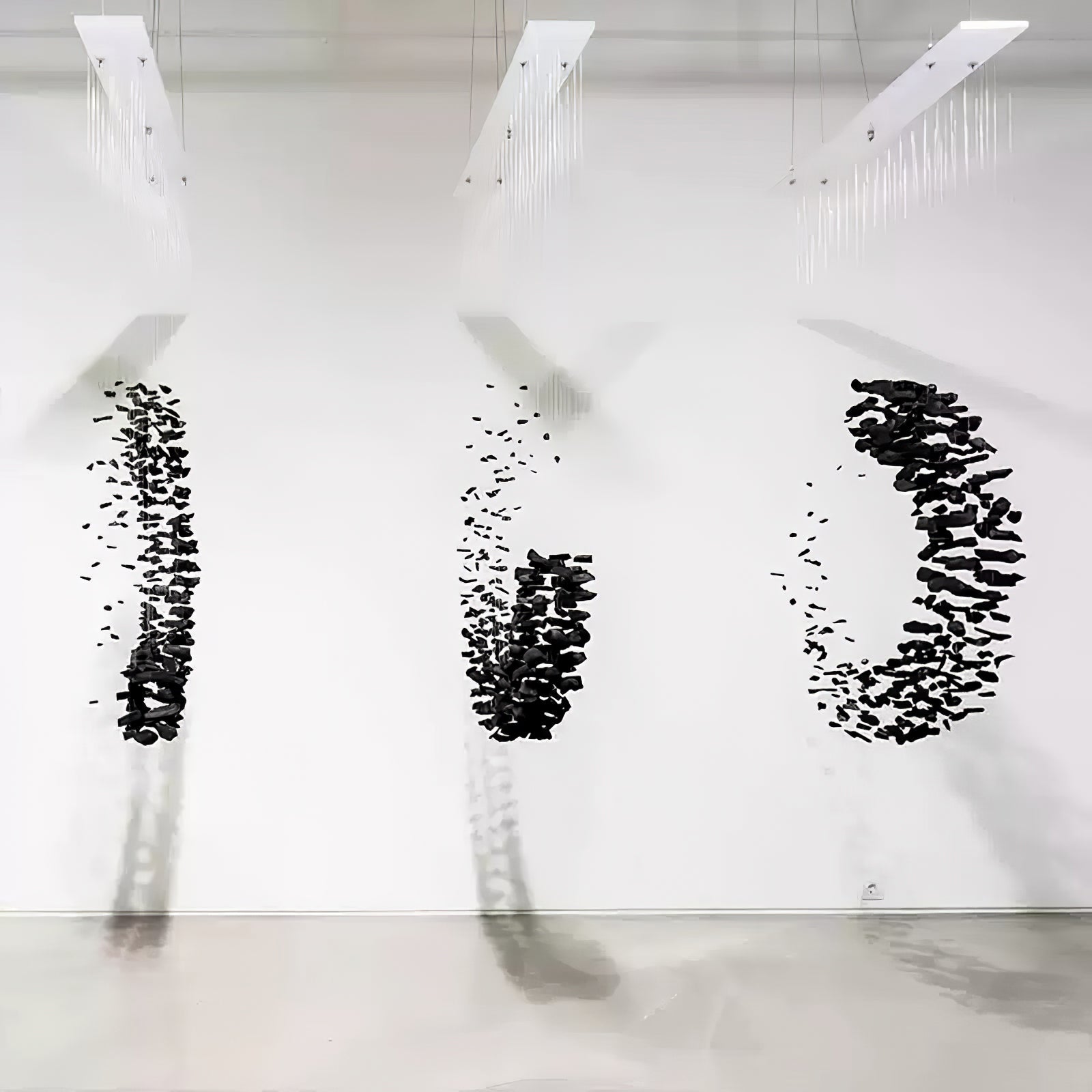 What begins with a single lump of charcoal extends into a line and then expands to fill a space. The design artist uses charcoal, with its dualistic connotations of creation and destruction, to suggest that everything in the world is connected and that the entire universe is contained within a single point. The implications are simple and clear.