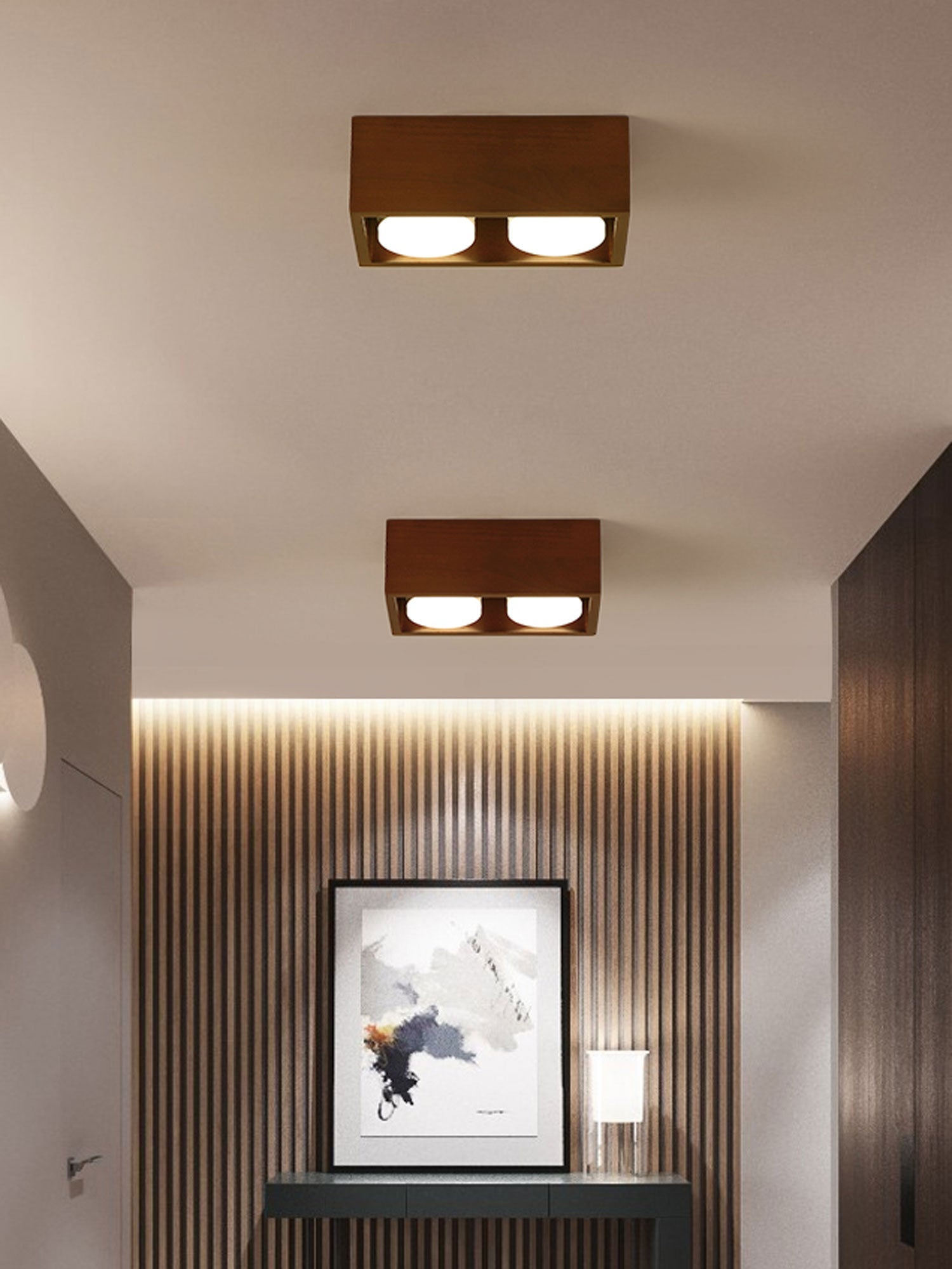 The Cubra wooden ceiling lamp distills modern minimalist style into a compact, sculptural form. Carved from rich-toned wood, it forms a perfect cube, enveloping a recessed light source with clean lines and warm, natural textures. This minimalist fixture emits a soft, focused glow, perfect for accenting artwork, hallways, or tranquil living spaces.