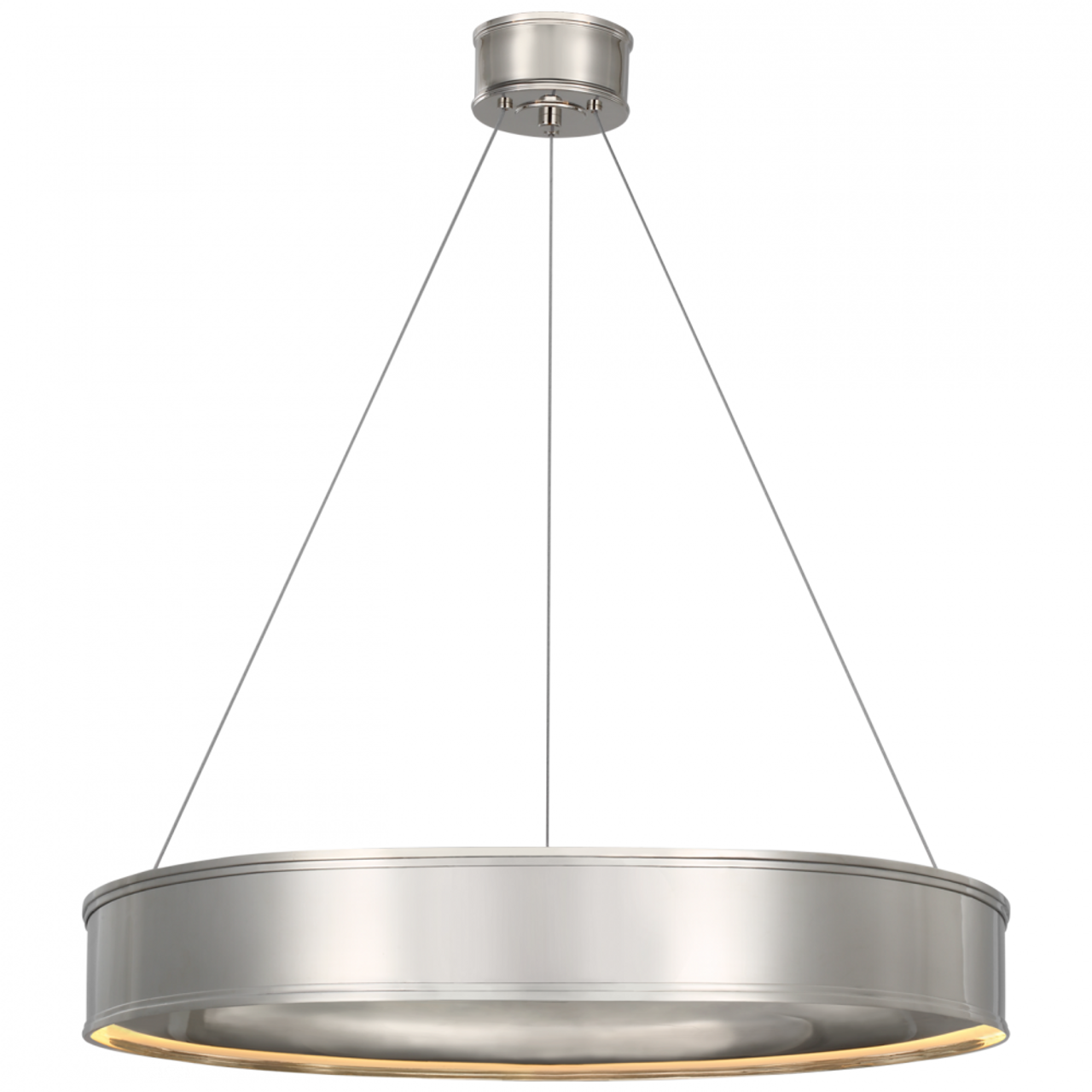 A versatile range that showcases sleek minimalism, the Chapman & Myers Connery series brings classic architectural elements to modern lighting. Available as both flush mount and chandelier styles, the designs showcase a statement metal ring, trimmed on the top and bottom edges, illuminated by LED light reflected on the inner surface. Contemporary and jewelry-like, these pieces will lend a sophisticated touch to homes, from living and dining rooms to kitchens, bedrooms and entryways.