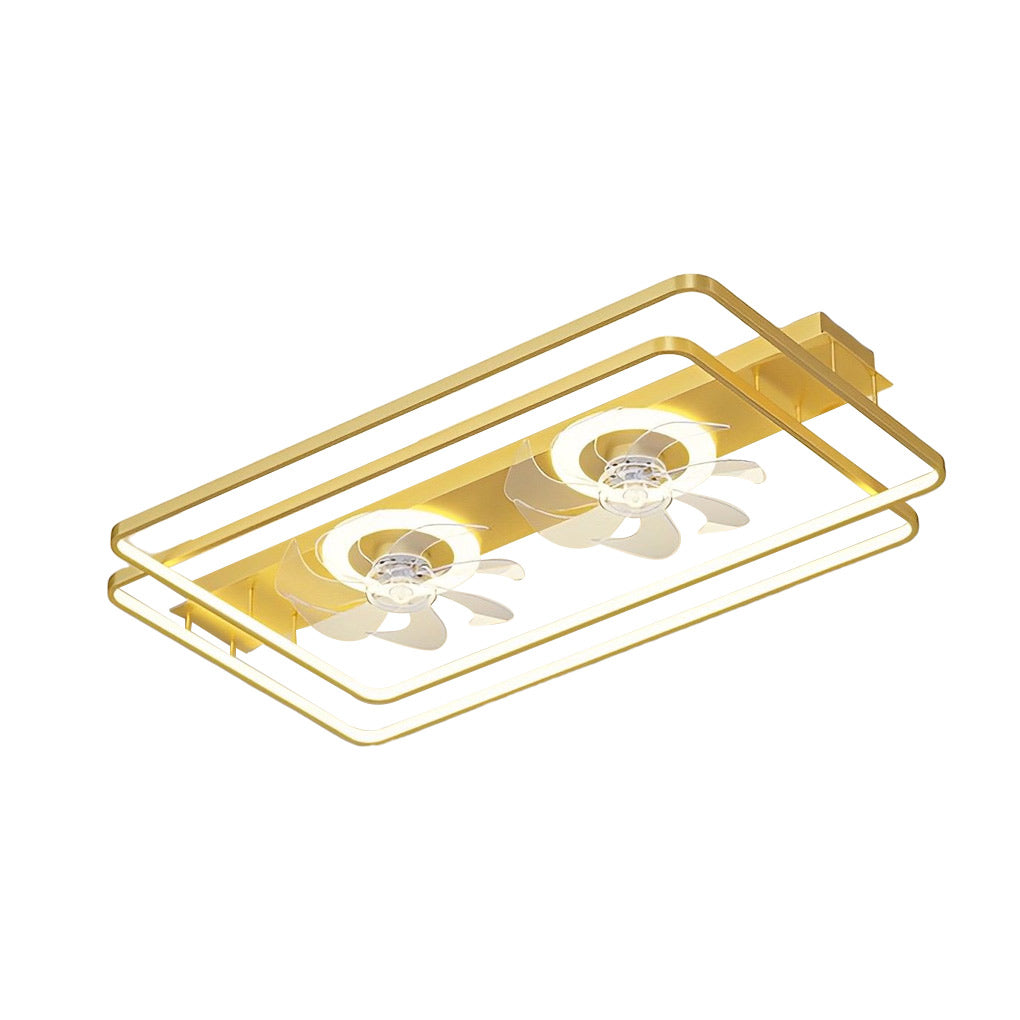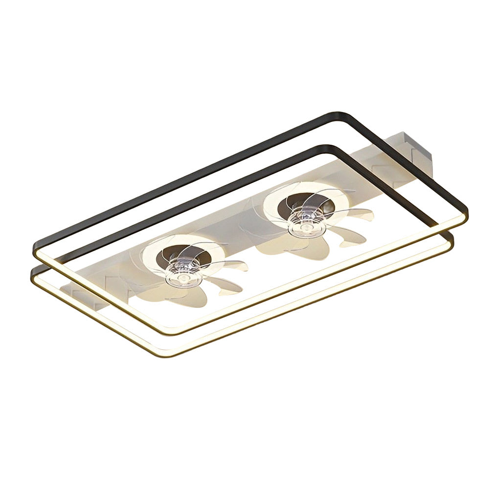 Creative Rectangular 3 Step Dimming Nordic Bladeless Ceiling Fan Lamp with 2 Fans