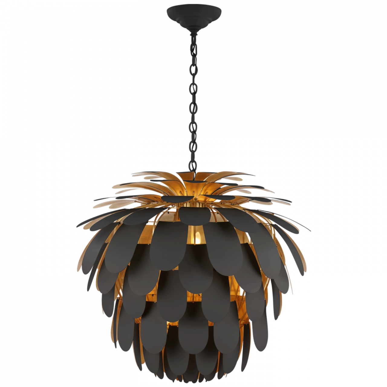 The Cynara Chandelier by Visual Comfort Signature, designed by Chapman & Myers, is an elegant and sculptural lighting fixture that brings modern sophistication to any room. With its intricate design and layered metal accents, this chandelier creates a dramatic focal point while providing soft, ambient lighting. Perfect for larger spaces like dining rooms or entryways, the Cynara Chandelier adds a refined, luxurious touch to your home.