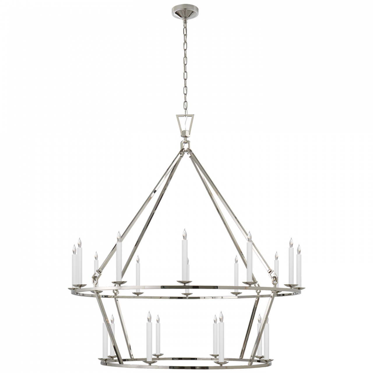 The Darlana Medium Two-Tier Chandelier by Visual Comfort Signature, designed by Chapman & Myers, combines striking design with sophisticated elegance. Featuring two tiers of open, geometric metal framing, this chandelier offers a dramatic yet refined look while providing ample illumination. Ideal for dining rooms, entryways, or living areas, the Darlana Medium Two-Tier Chandelier adds a timeless touch of luxury and style to any space.
