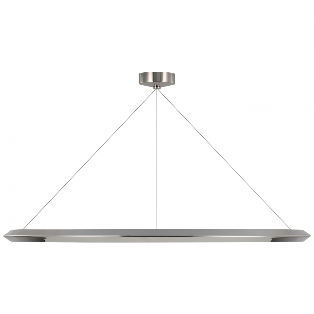Defined by its bold and efficient minimalism, the Encircle by Peter Bristol offers a graphic and modern touch to interiors. The seamless ring is formed from a triangular extrusion held by thin, minimal cables. Featuring fully integrated wiring, the modern LED chandelier is available in three sizes in bronze, polished nickel or natural brass, and will lend an intentional statement to any style of decor.