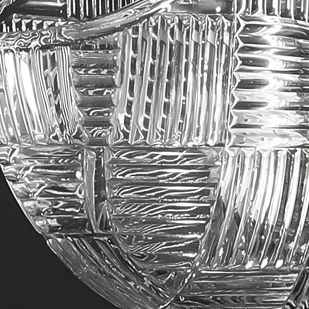 • This small chandelier is made of transparent glass, which shows a very beautiful lighting effect when illuminated by light. Its glass lampshade has a unique design, exquisite workmanship, beautiful appearance and strong decorative feeling. It looks like an exquisite small bag and is also designed with a simple leather handle.