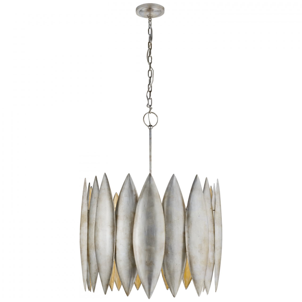 Designed by Barry Goralnick, the Hatton Pendant by Visual Comfort Signature is a striking piece that adds elegance to any space. Its captivating lamp shade is made of overlapping marquise-shaped metal pieces, beautifully arranged around a central column. The light emanates from both the top and bottom of the shade, as well as the spaces between the pieces, creating a warm and inviting atmosphere that enhances the overall ambiance.
