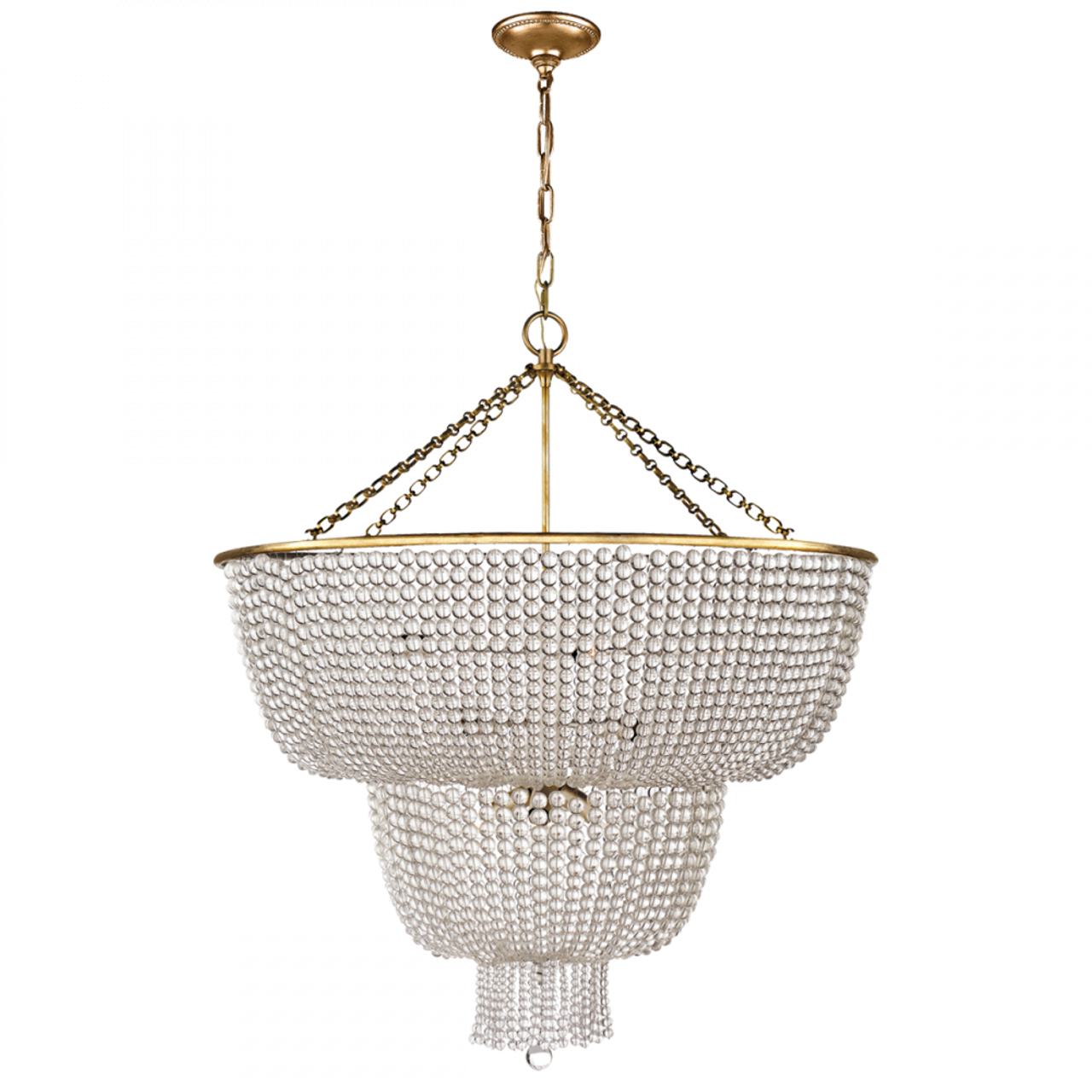 The traditional Jacqueline Two-Tier Chandelier, designed by Aerin, will radiate style & prestige in your space.  Imagine dancing with your partner in a great room - the Jacqueline with her 12-lights - illuminates your every step.  Imagine eating dinner with your family in your dining room - the Jacqueline sheds light down upon your seafood & salad.  Bespeckled in hand-rubbed antique brass & white acrylic shade, this masterpiece presented by Visual Comfort will be a showstopper in any room.