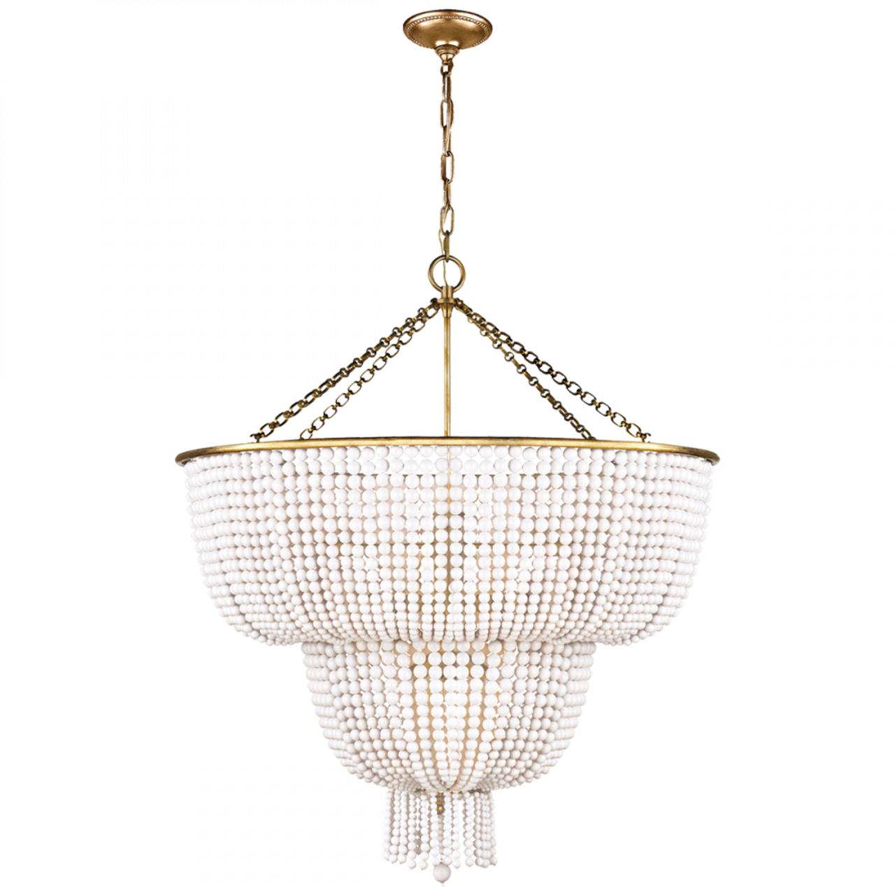 The traditional Jacqueline Two-Tier Chandelier, designed by Aerin, will radiate style & prestige in your space.  Imagine dancing with your partner in a great room - the Jacqueline with her 12-lights - illuminates your every step.  Imagine eating dinner with your family in your dining room - the Jacqueline sheds light down upon your seafood & salad.  Bespeckled in hand-rubbed antique brass & white acrylic shade, this masterpiece presented by Visual Comfort will be a showstopper in any room.