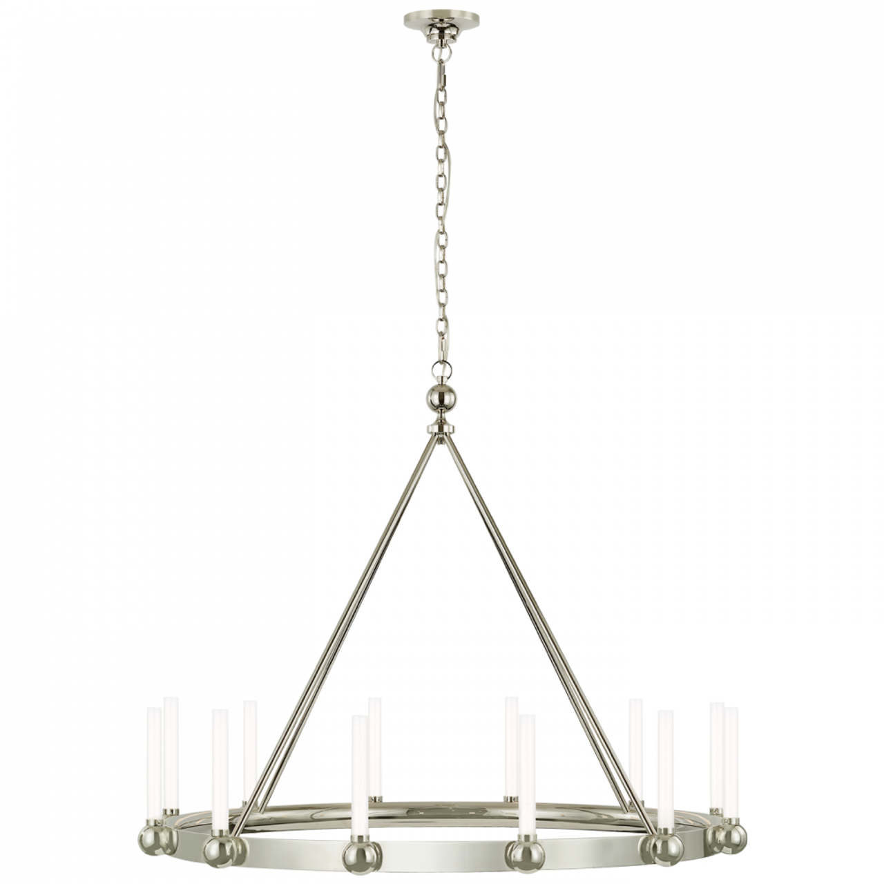 The extensive Jeffery series by Thomas O'Brien offers a vintage feel reimagined with a modern lens. Spherical metalwork detailing in bronze, brass or nickel balances opaque cylindrical shades, casting an elegant glow that's ideal in multiples for any room in the home, including hallways, entryways or bedrooms.