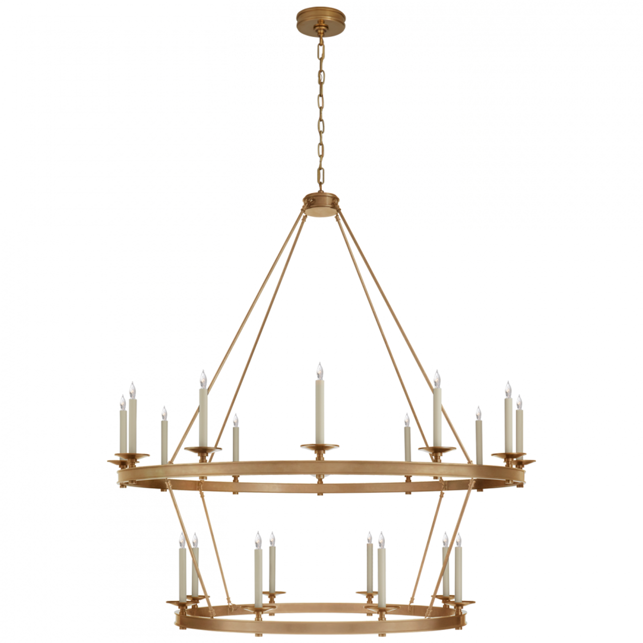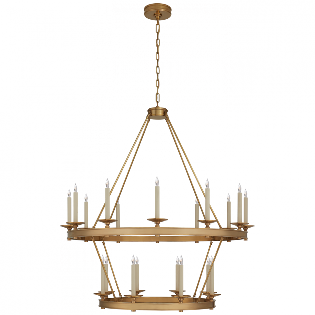Illuminate your space with the Launceton Large Two Tiered Chandelier by Visual Comfort Signature, designed by the renowned Chapman & Myers. This stunning fixture features a sophisticated two-tiered design, seamlessly blending classic elegance with modern aesthetics. Perfect for grand dining rooms or foyers, it provides a warm, inviting glow that enhances any room's ambiance.