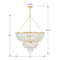 A cousin of the popular Eloise, the Leon features three tiers of white glazed glass plates, with a matching glass cover over the brass canopy. The classically elegant three-light chandelier is characterized by striking finishes and organic forms. The steel frames features an antique brass finish, beautifully contrasting the oyster-like forms of the glass plates, each with its own unique finish. Damp-rated, although limited covered outdoor conditions may affect finish. Finish may vary.