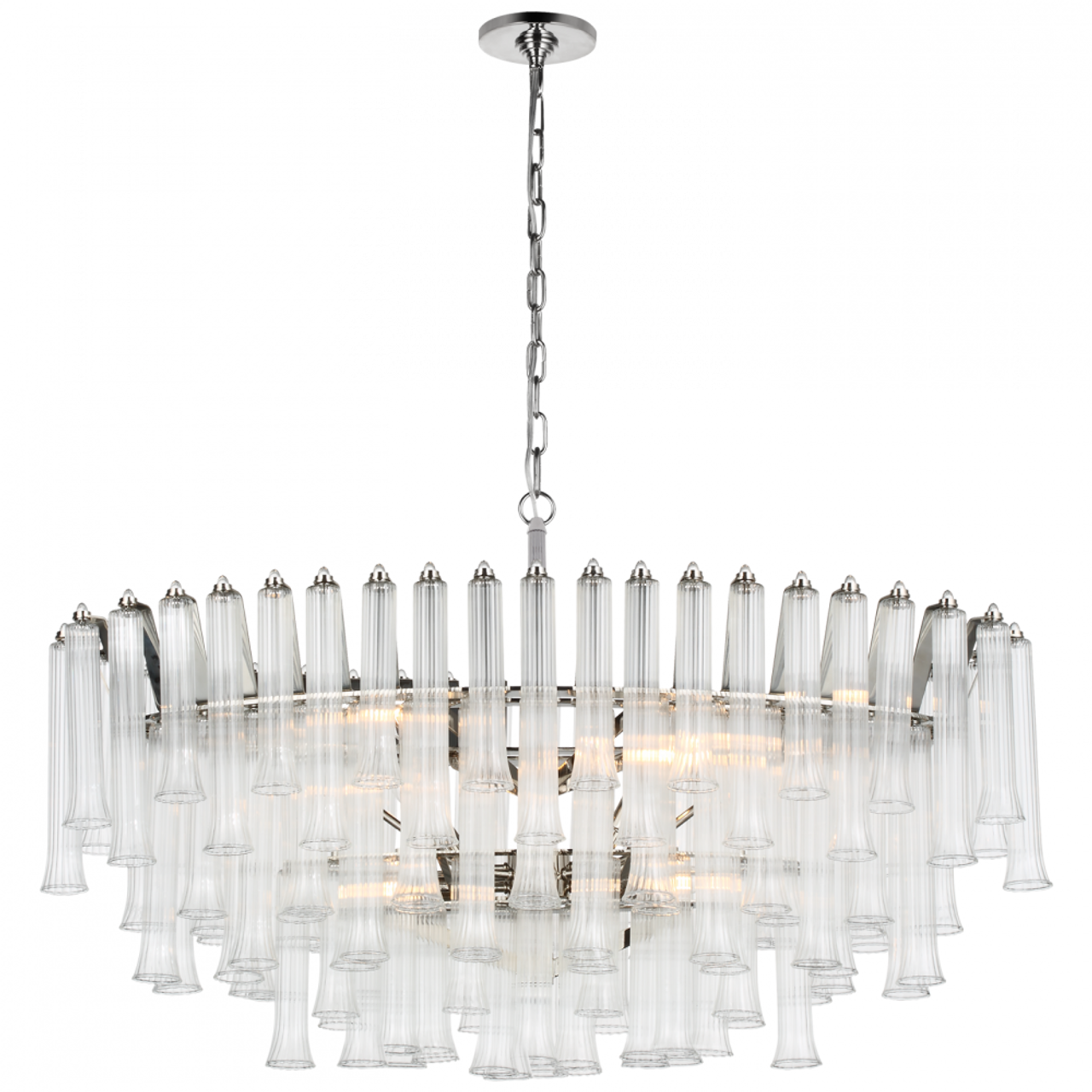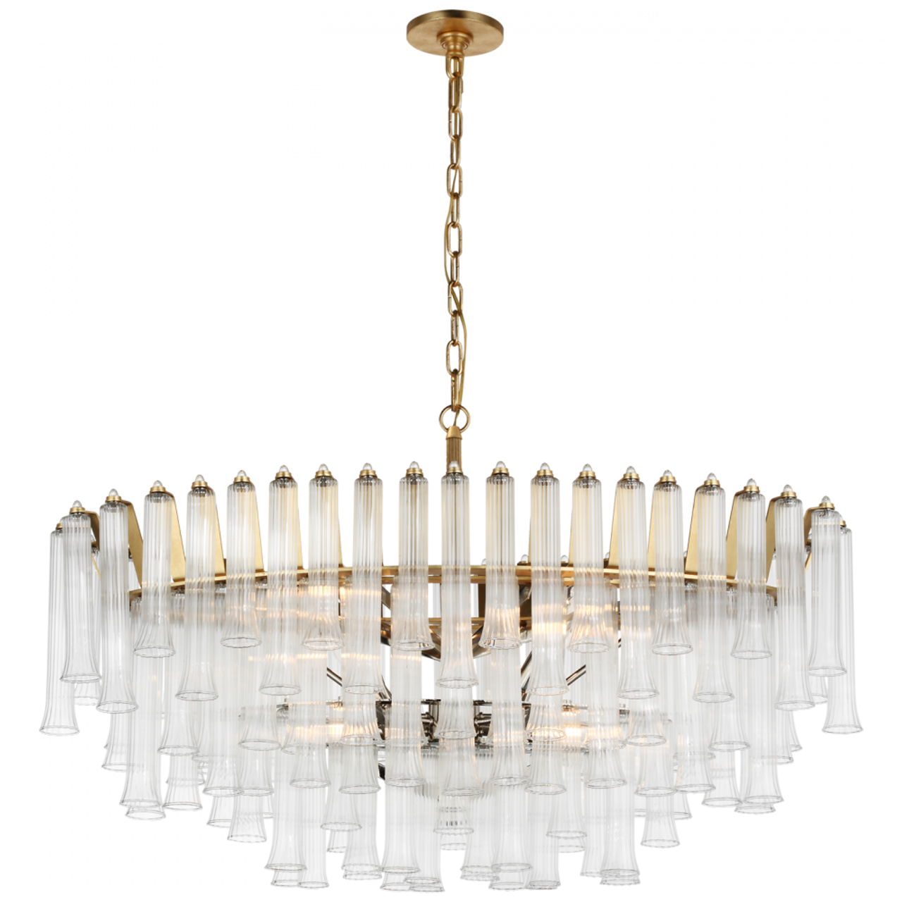 The Lorelei by Julie Neill showcases elegant, fluted glass tubes thoughtfully arranged in cascading, concentric circles around a polished frame. Reminiscent of art deco fringe, the fixtures will lend a decadent touch to any space, both small and grand rooms alike.